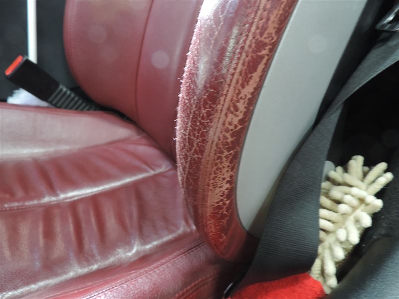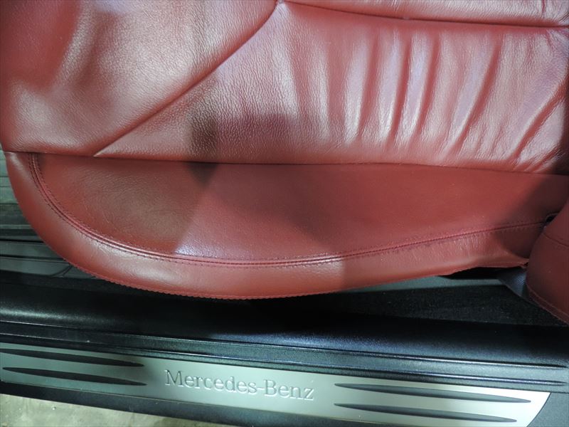 メルセデスベンツのレッドカラーの革製シートをリペアします!!
