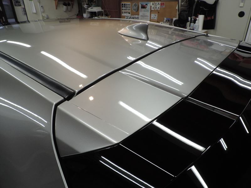 ルーフ後尾のスポイラー形状にブラックのパーツがありますが、ここはピアノブラック系のパーツでした。