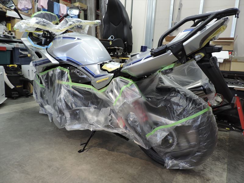 ここからは、ボディ全体にマスキング養生を行って・・・・ポリッシング時のコンパウンド粉が細かい隙間に入って汚らしくならない様に養生してみました!!(^_-)-☆