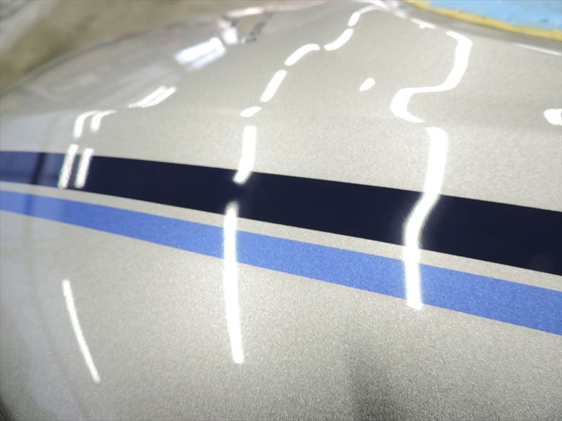 実際に磨き上げた燃料タンクのクリヤ塗装表面です!!