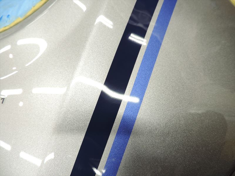 実は!・・・この紺色とブルーのラインはクリヤ塗装の下にあるのです!!