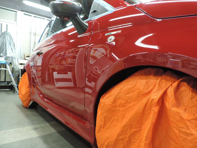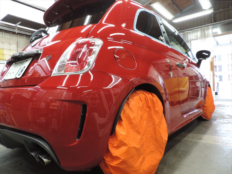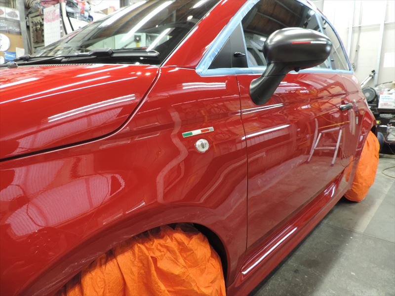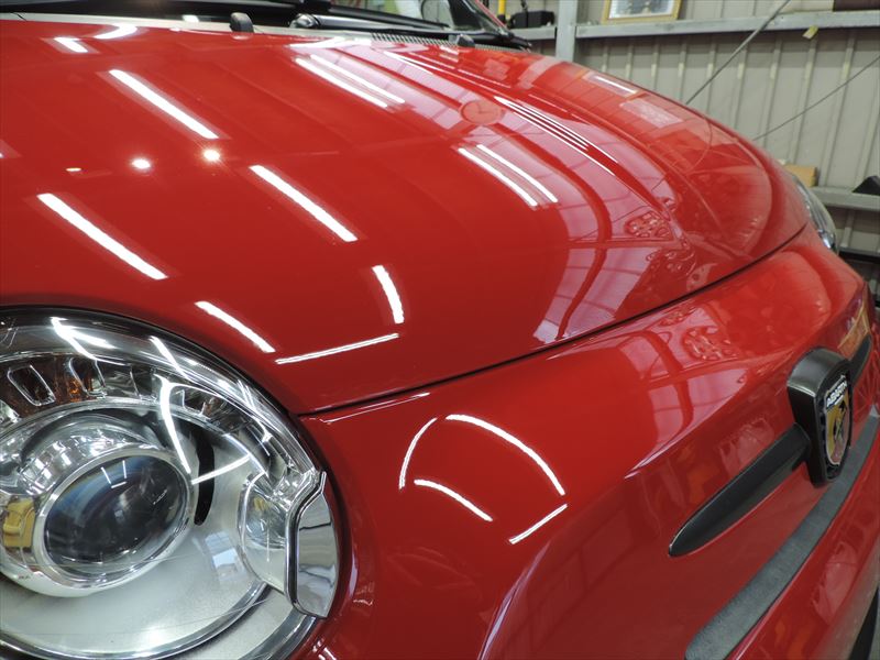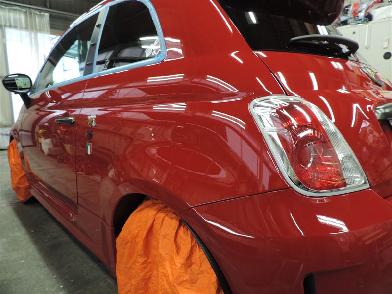 アバルト595:ボディSPガラスコーティングのメンテナンス施工(その2)| 愛車・自動車のボディの艶引け・磨き仕上げ・ガラスコーティングの事なら所沢のトータルリペア輝々にお任せください。