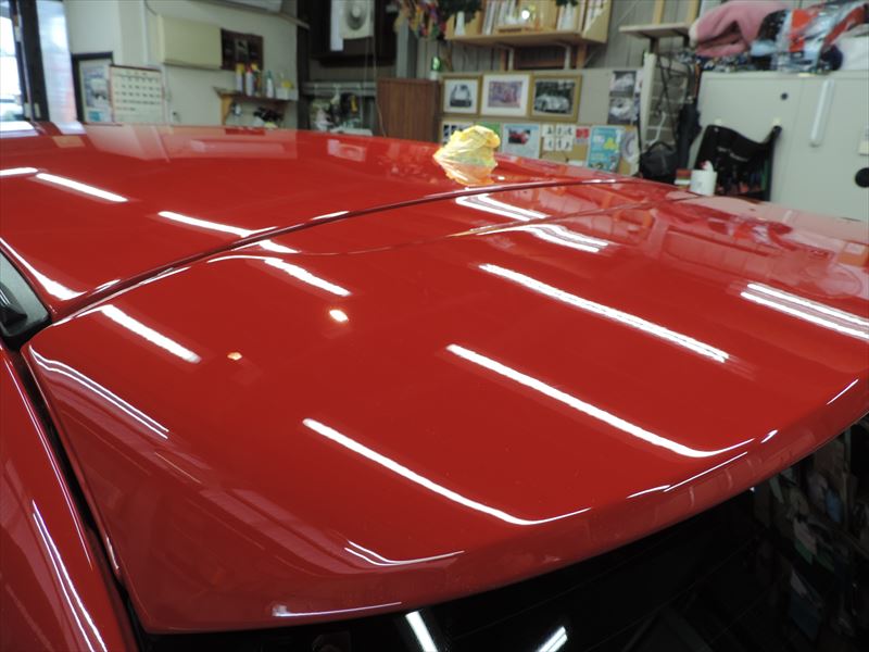 前回のボンネット・ルーフ・トランク(リアハッチ)にあった、コーティング表面の傷みの跡も綺麗に整えられていることが写真でもわかっていただけるか!?と思います。