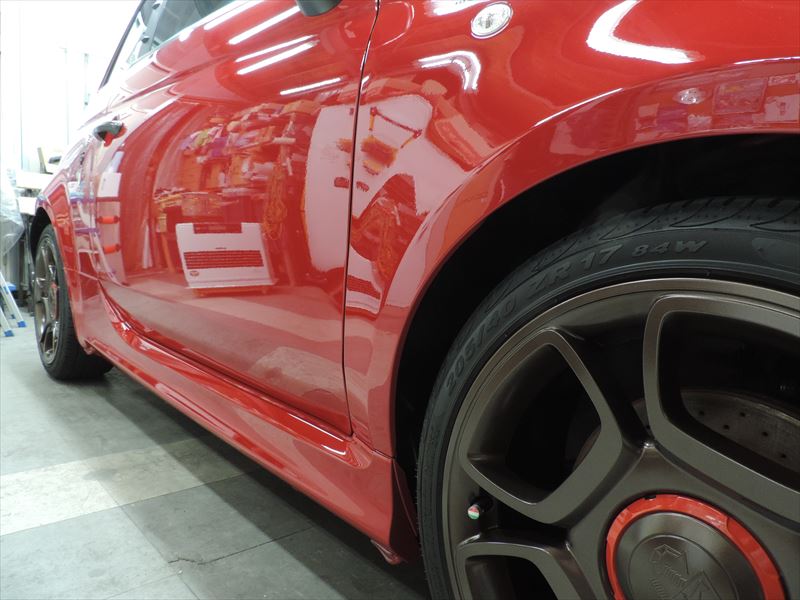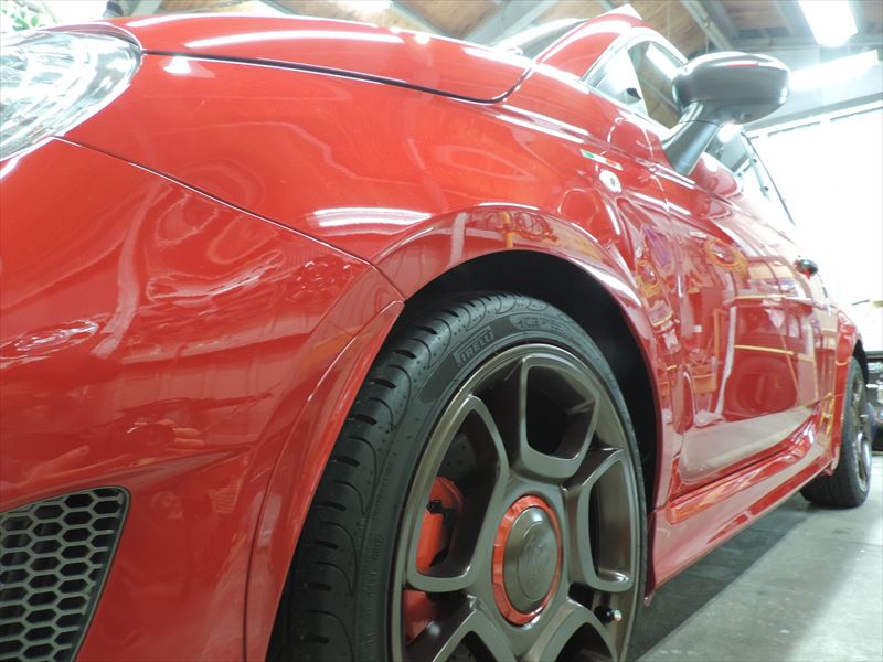 アバルト595:ボディSPガラスコーティングのメンテナンス施工(その3)| 愛車・自動車のボディの艶引け・磨き仕上げ・ガラスコーティングの事なら所沢のトータルリペア輝々にお任せください。