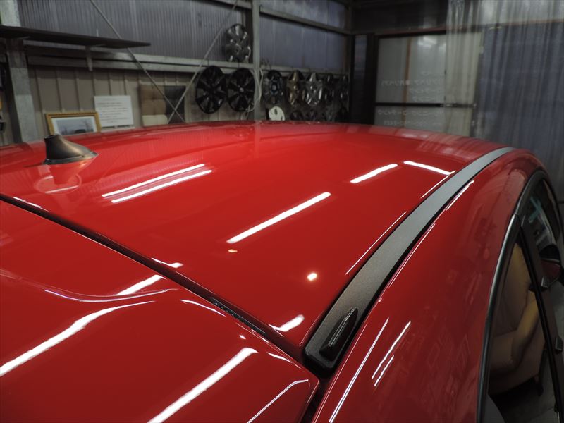 ②の状態から脱脂作業やマスキング見直ししてSPガラストップコートを塗布すると、ここまで艶やかで綺麗に仕上がって参ります!