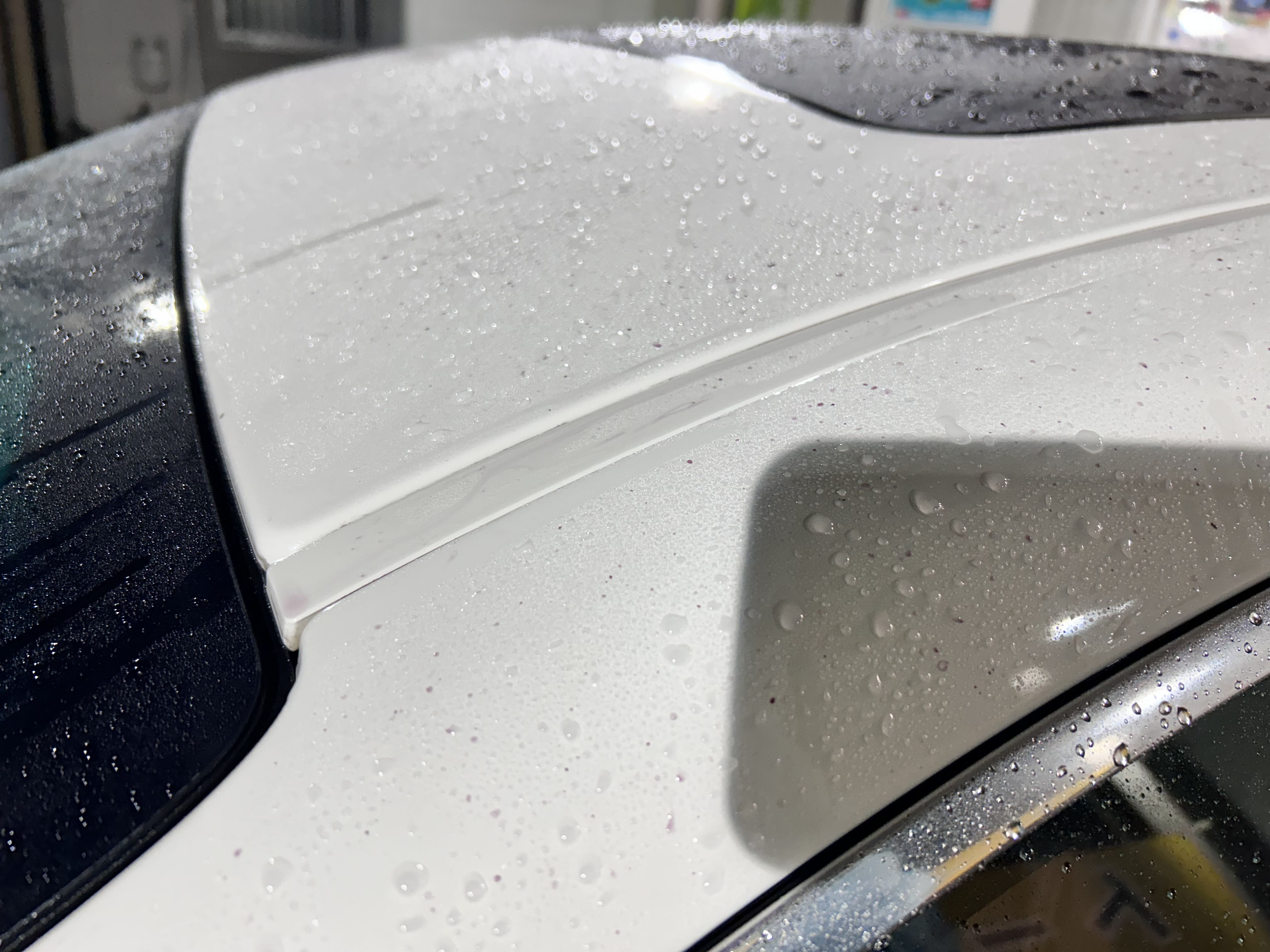 撥水しても流れ落ちないで・・・ボディに留まっては!・・・太陽光に照らされてシミの原因になってしまう可能性が高いですよね!!(-_-;)