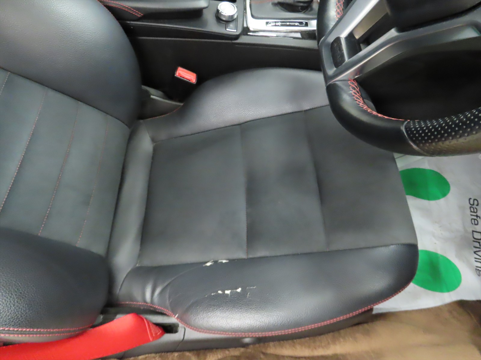 作業は、メルセデスベンツ:合皮レザーシート座面右側サポート部分の表皮裂け事象の革リペア施工です!