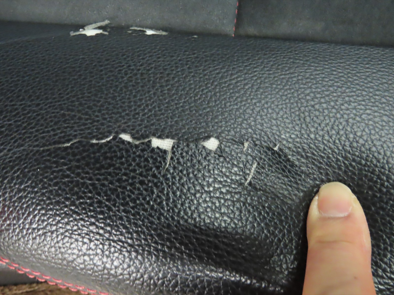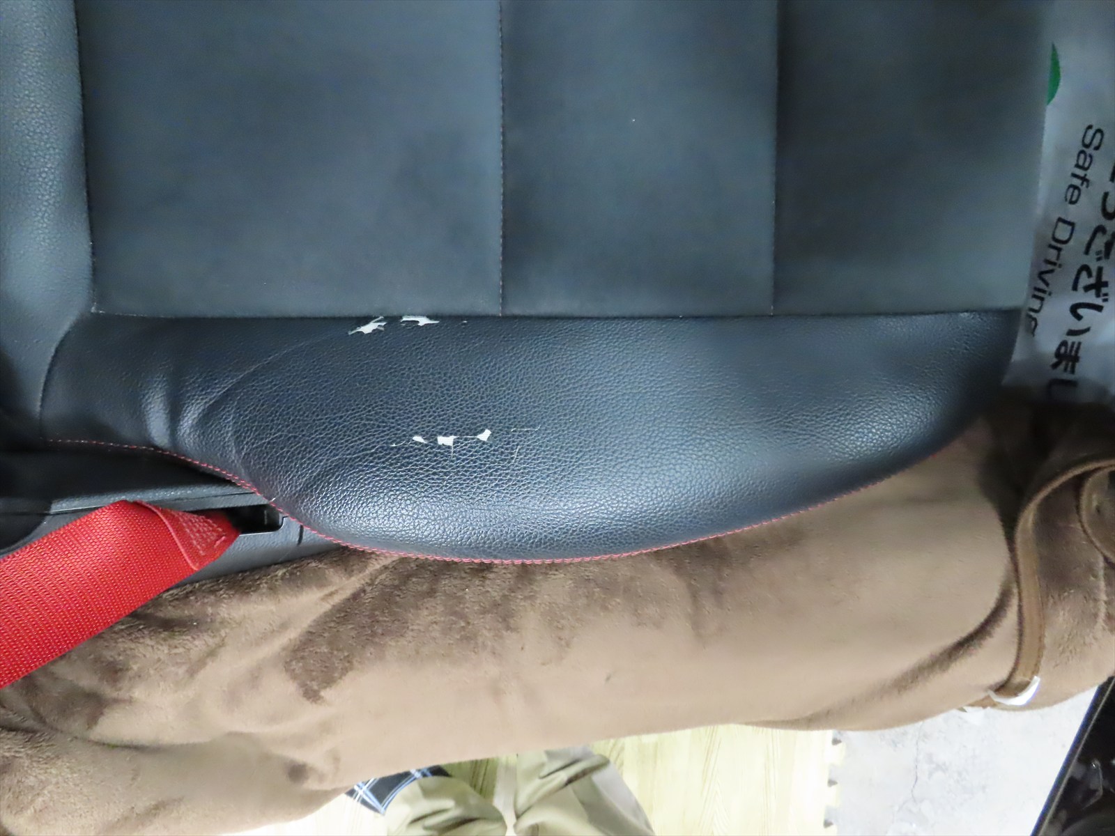 恐らく・・・乗り降りの際にシートのプラスチックカバーにレザー生地が擦れて切れ、裂けに発展したのでしょう。・・・相手がプラスチック製で硬いので他の問題や対策はどこかのタイミングで必要になる可能性も考えておくと良いかもしれません。(;^_^A