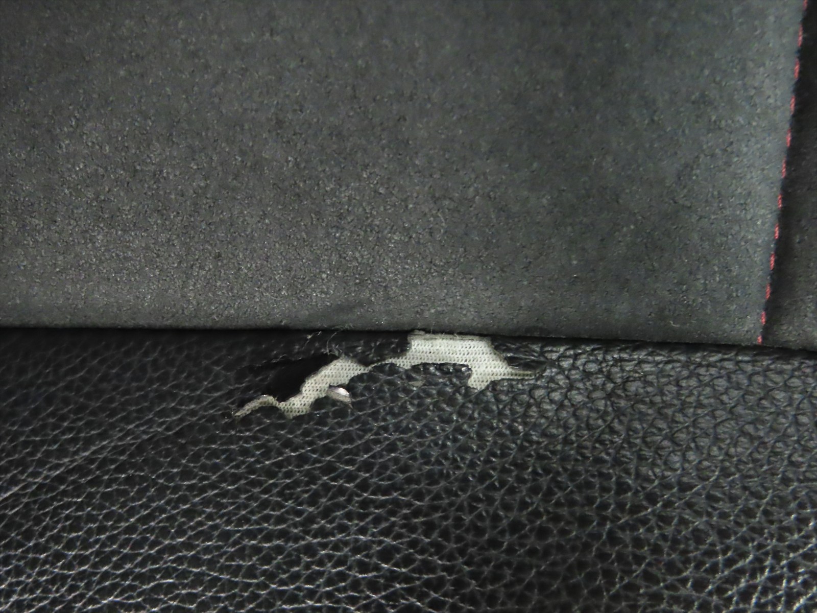 内装では革レザーシートの座面、サポート部分の表皮が避けてしまった事象のリペアです。