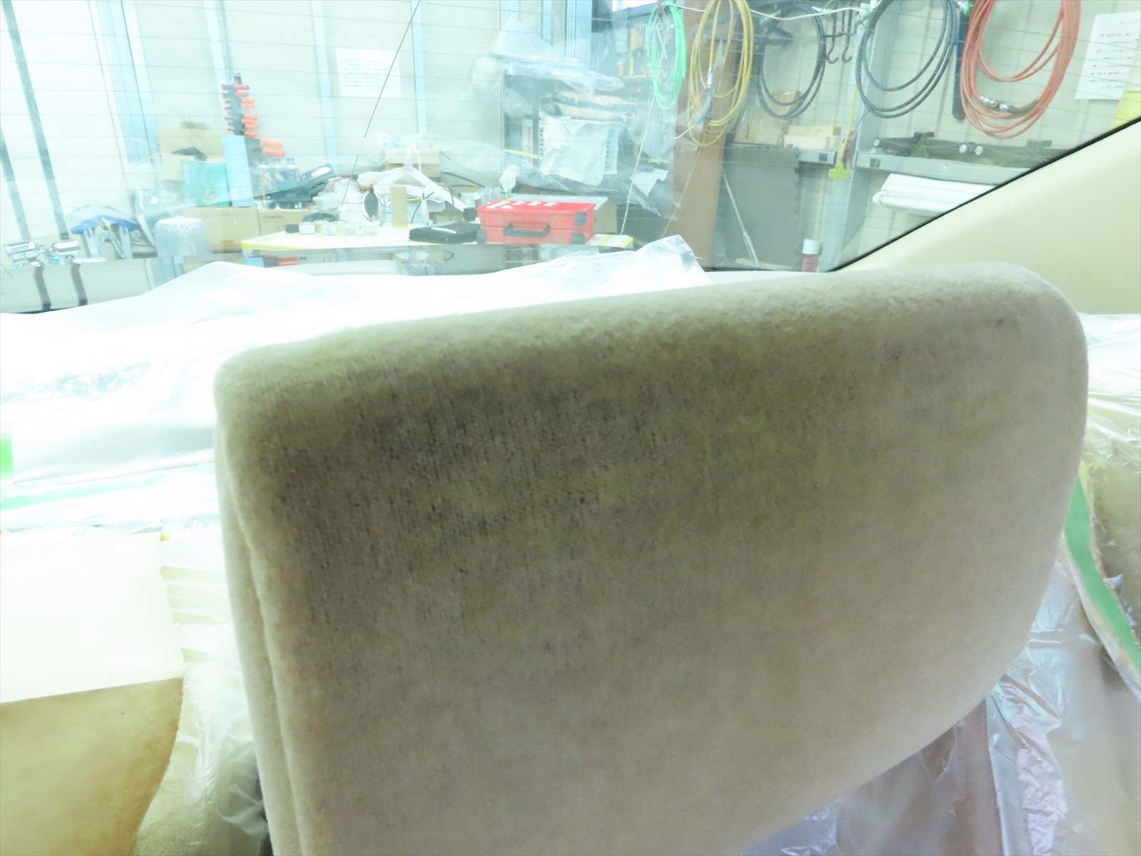 座面とは違い・・・直接的に人の身体に触れるのは頭の後ろ(後頭部)ですので、多少のゴワツキはご勘弁いただき・・・座面よりも多くのリペア散布にて対応しました!