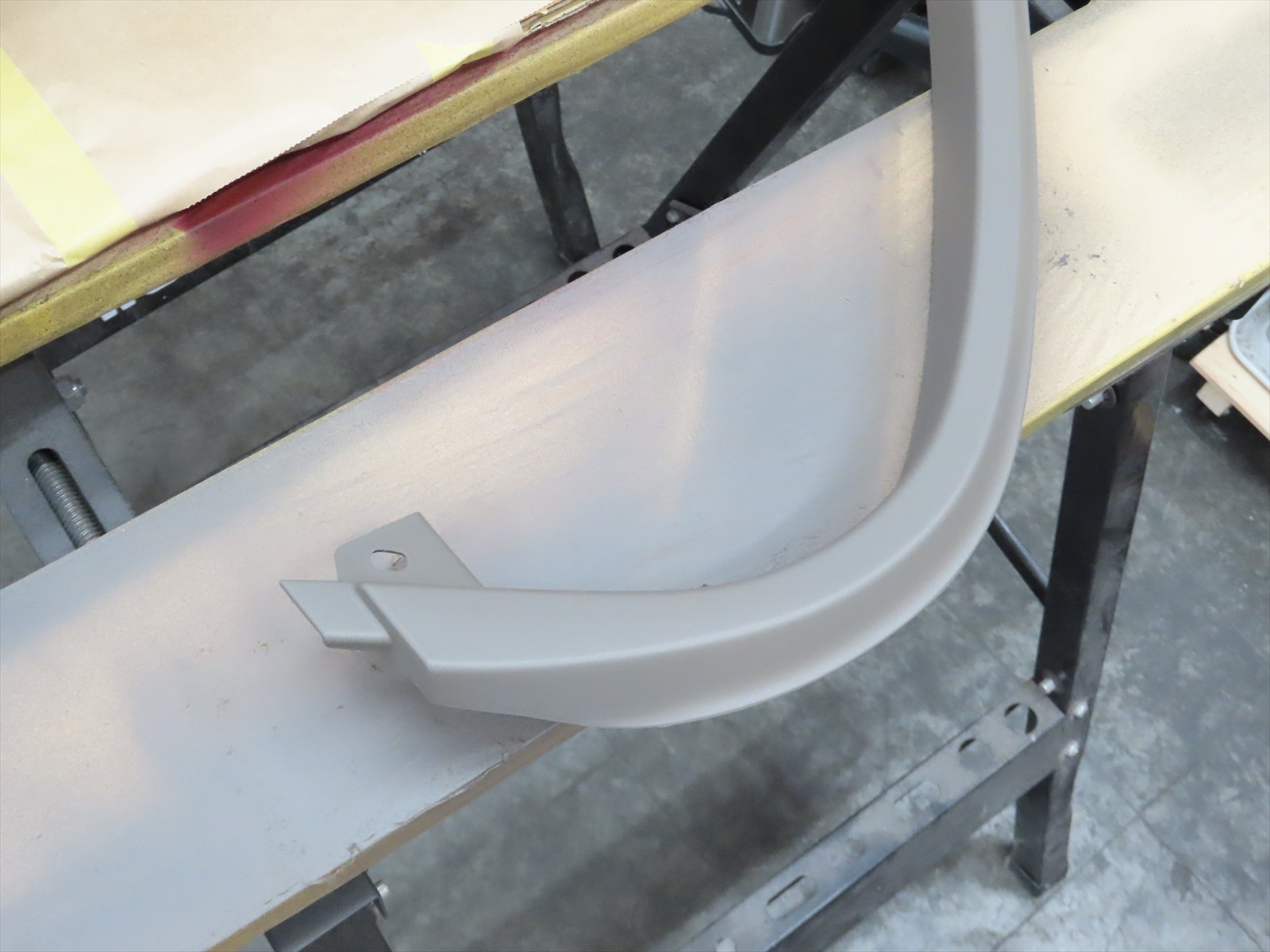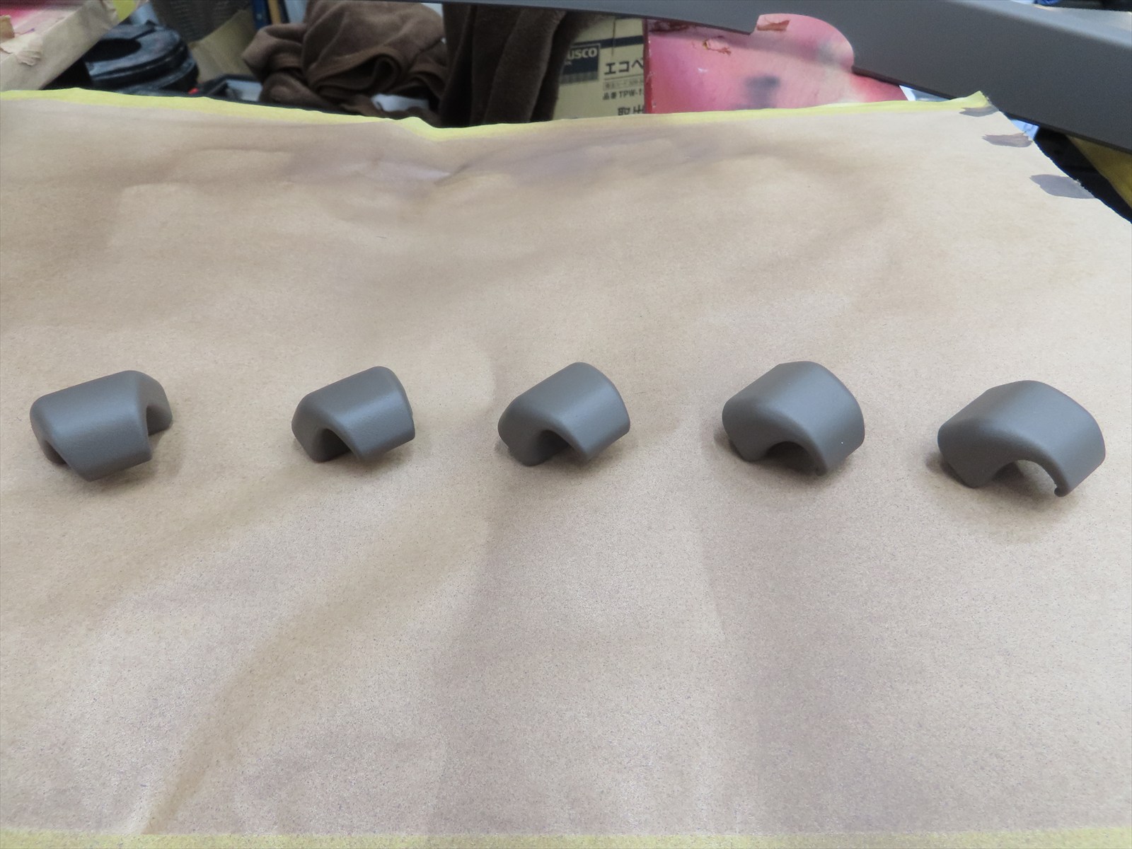 まず長物のモールですが、リアドアのウィンドウガラスの内装モールですね!・・・本来、左側の5個の小さいパーツを塗装することになっていましたが・・・パーツ脱着の際にモールにキズをつけてしまった!(;^_^Aとの事で、急遽・・・リペアすることになりました。