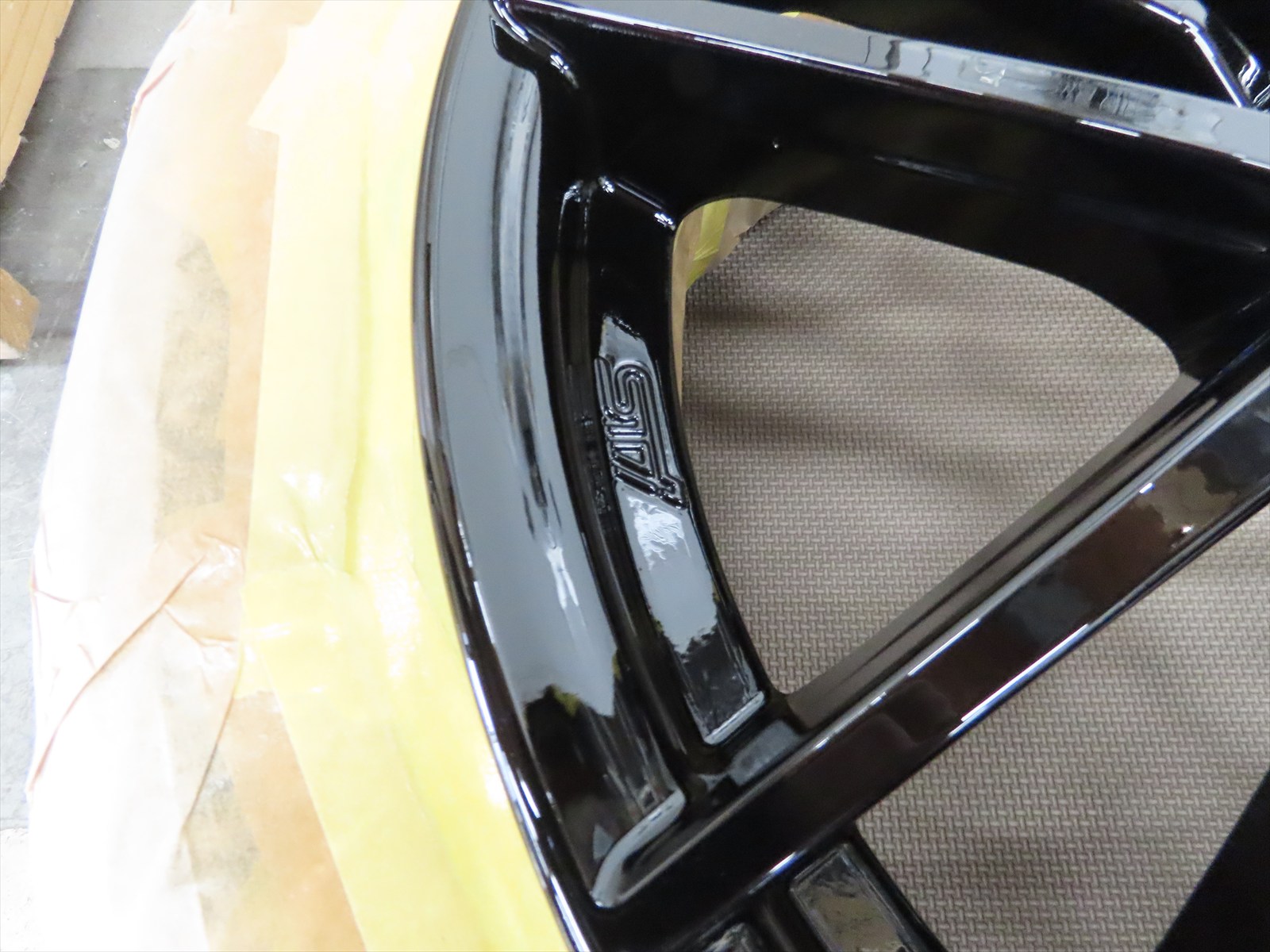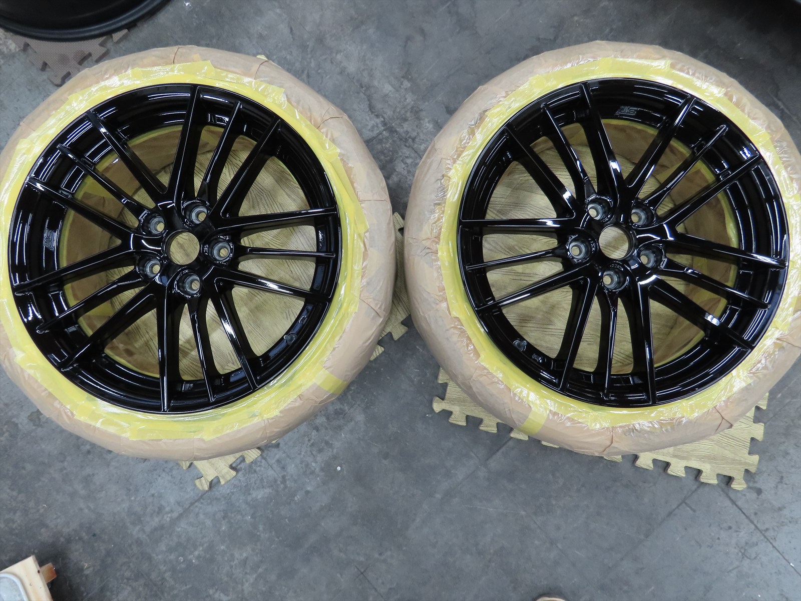 状況によって変化はしますが、タイヤをホイールから外さなくてもできる仕様やサイズ感もありますので・・・ここではマスキングによるダスト回避にてクオリティーを確保していきます!!(^_-)-☆