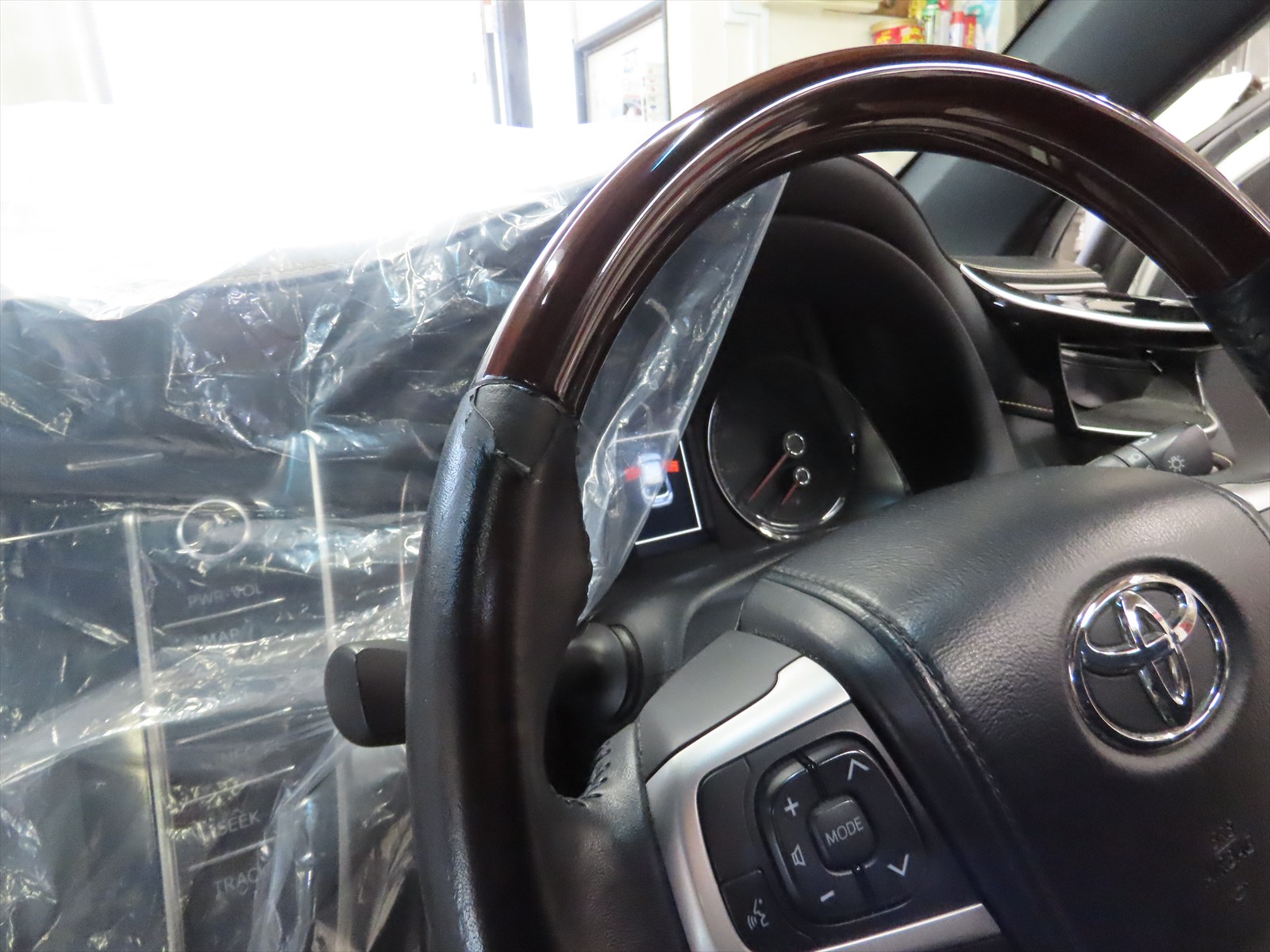 トヨタ:ハリア・ステアリングハンドルの本革表皮の剥がれリペア施工です!
