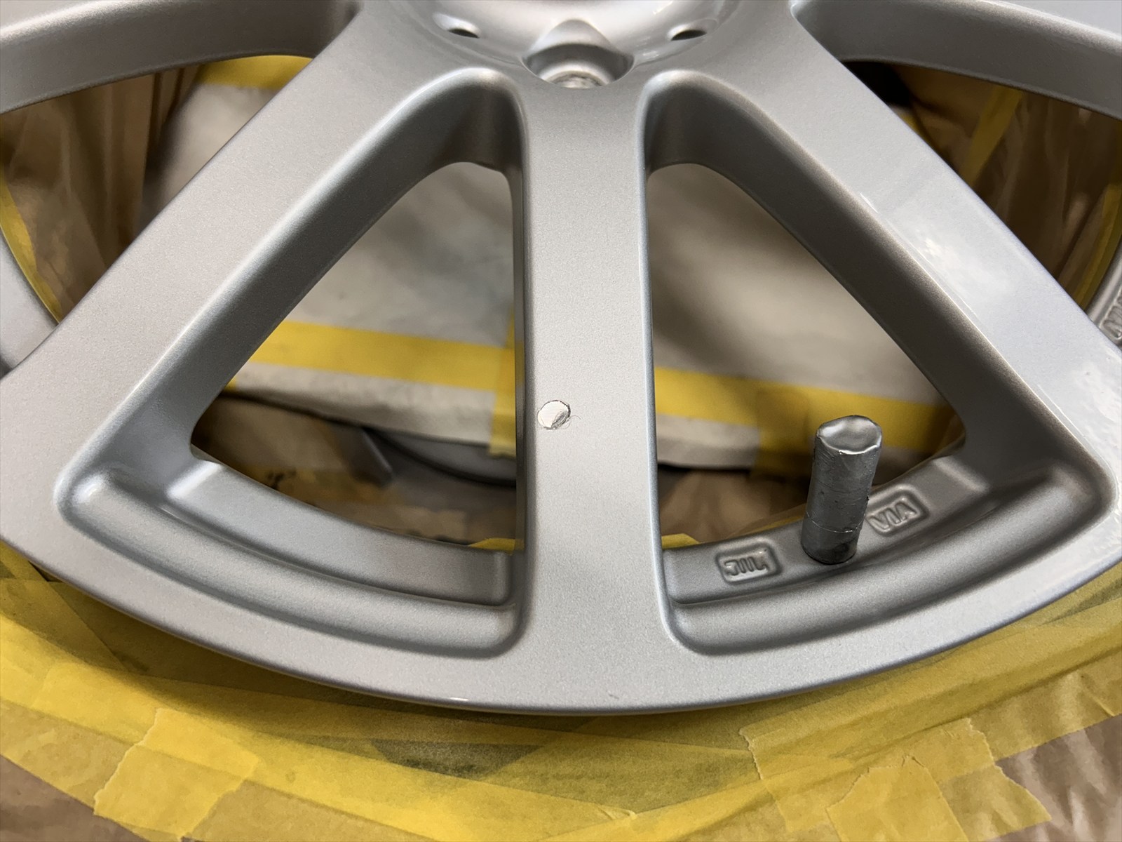 写真のスポーク部分に出来てしまった・・・打痕キズ・・・走行時にバチ!!っと硬い石の様なのもが当たった様に感じます・・・(-_-;)とのこと。