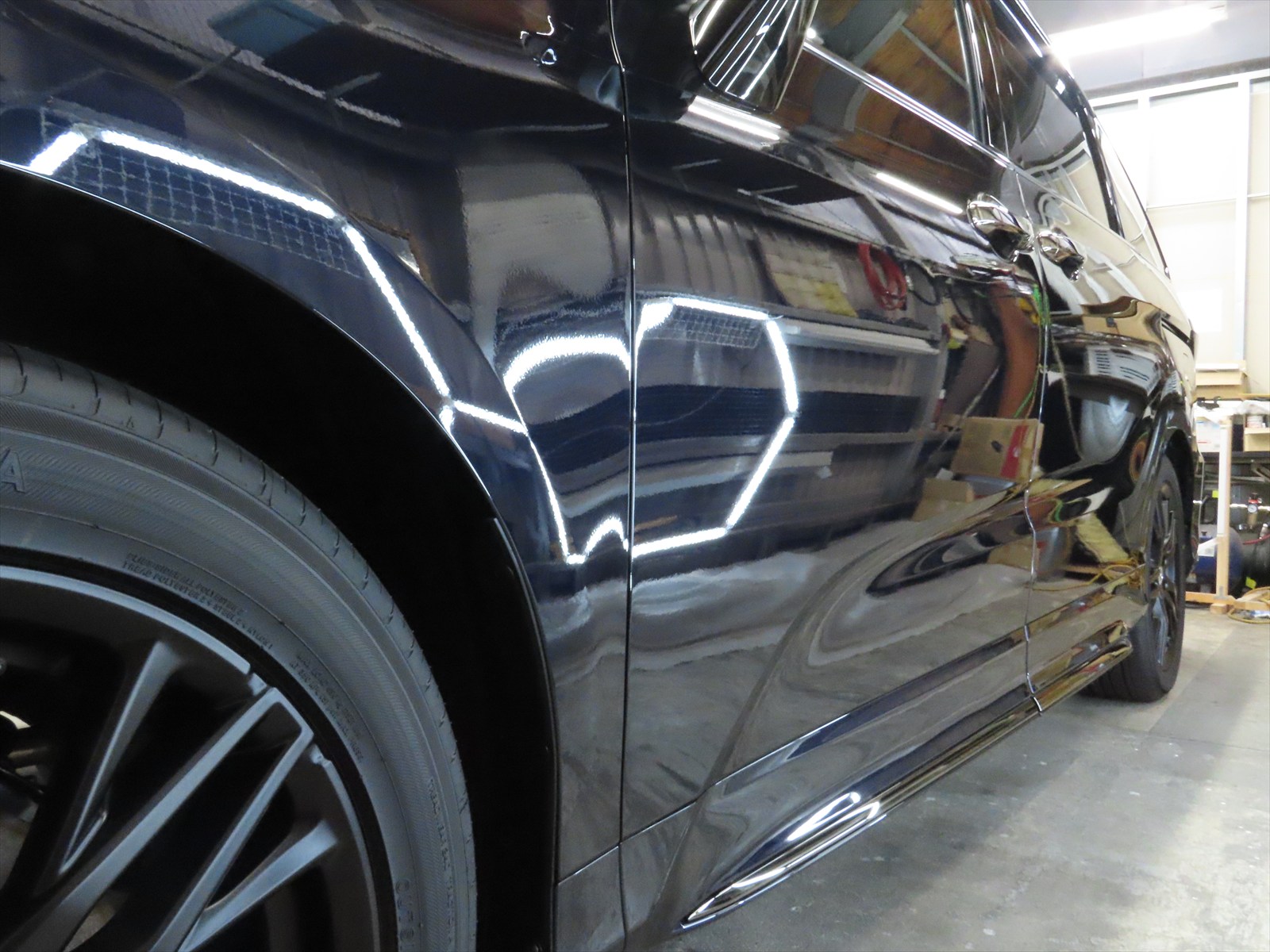 ボディのサイド面の輝き具合は、濃色車に限らず・・・キャラクターラインがハッキリと再現されてきますので、深い艶感という点では申し分ない仕上がりとなっています!!(^_-)-☆