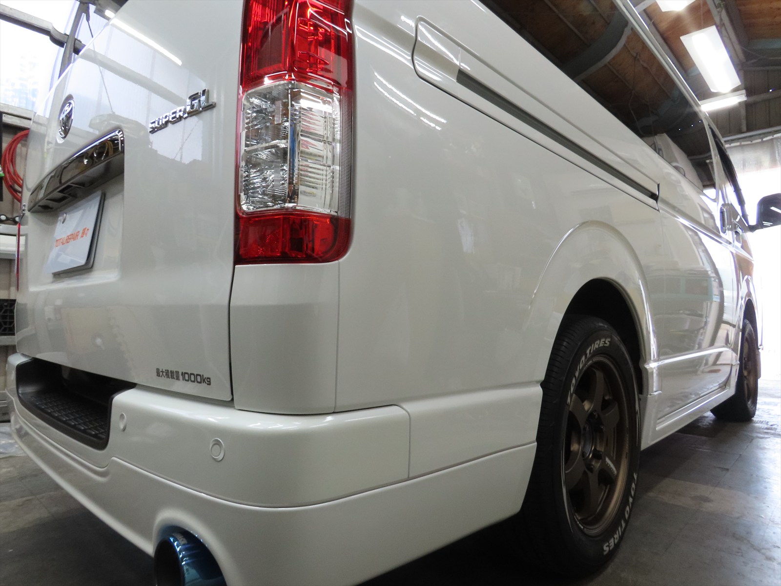トヨタ:ハイエース・スーパーGLのボディ・SPガラスコーティングの定期メンテナンス施工です!