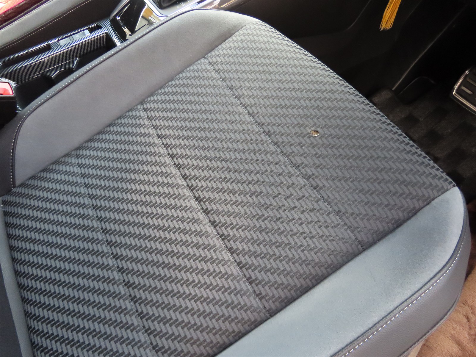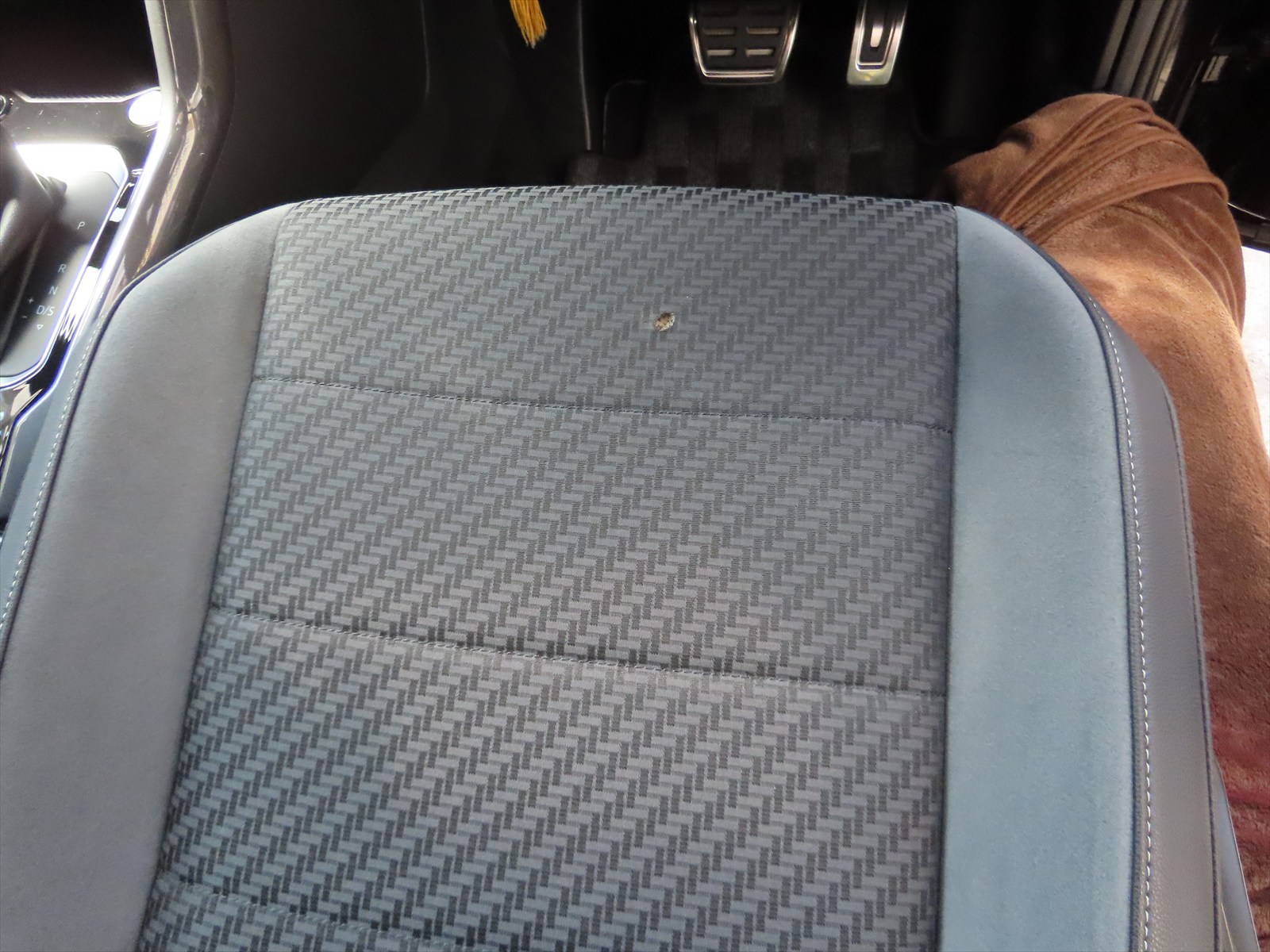 フォルクスワーゲン:ファブリック生地のコゲ穴埋めリペアの施工です!
