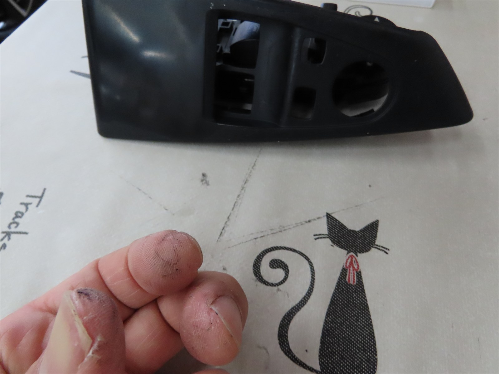 さてさて!・・・取り外す作業だけなのに、指先に黒い塗料が付いてしまいました!!