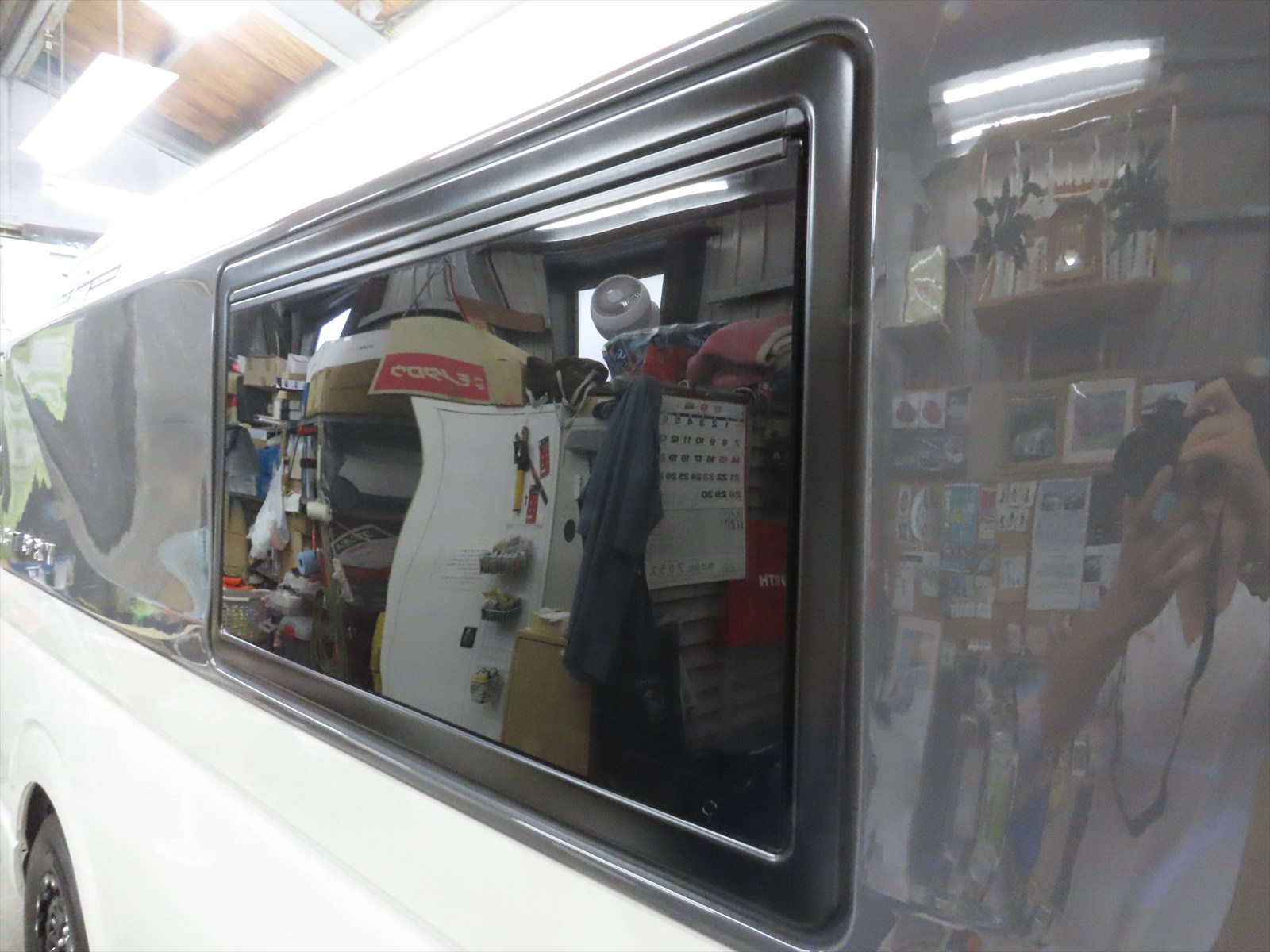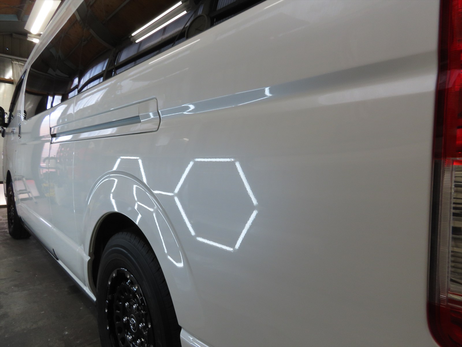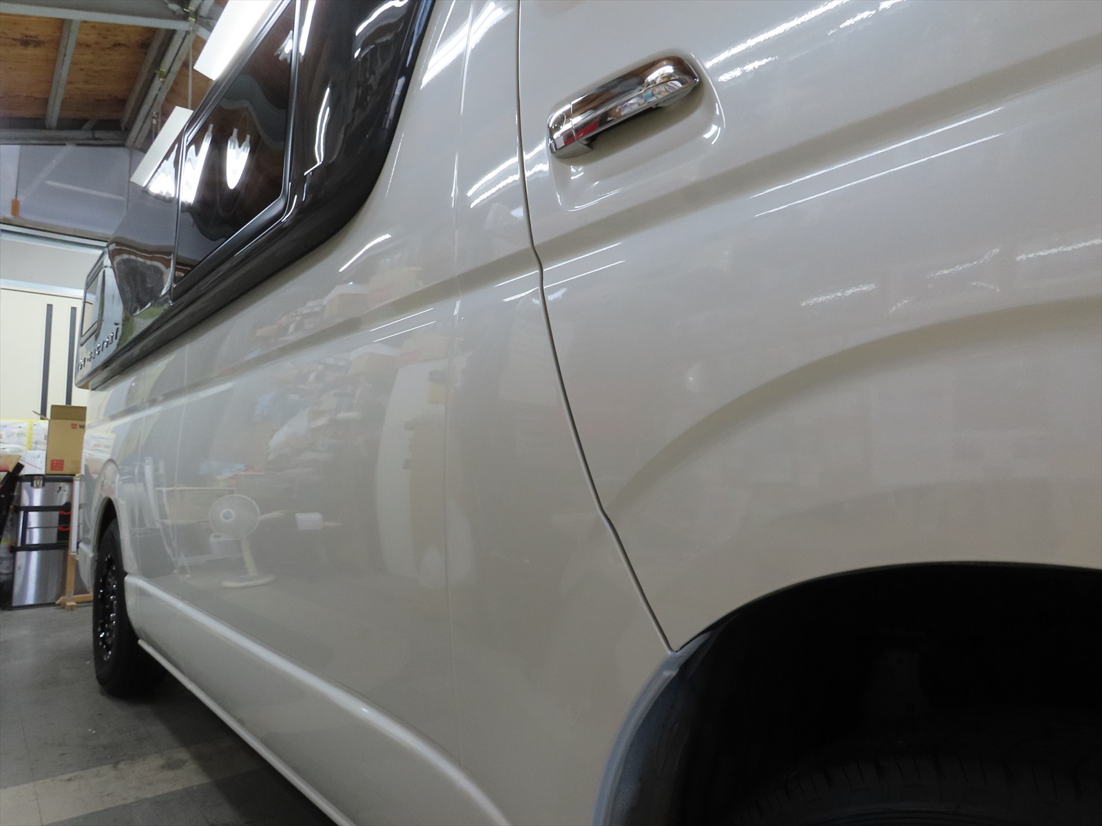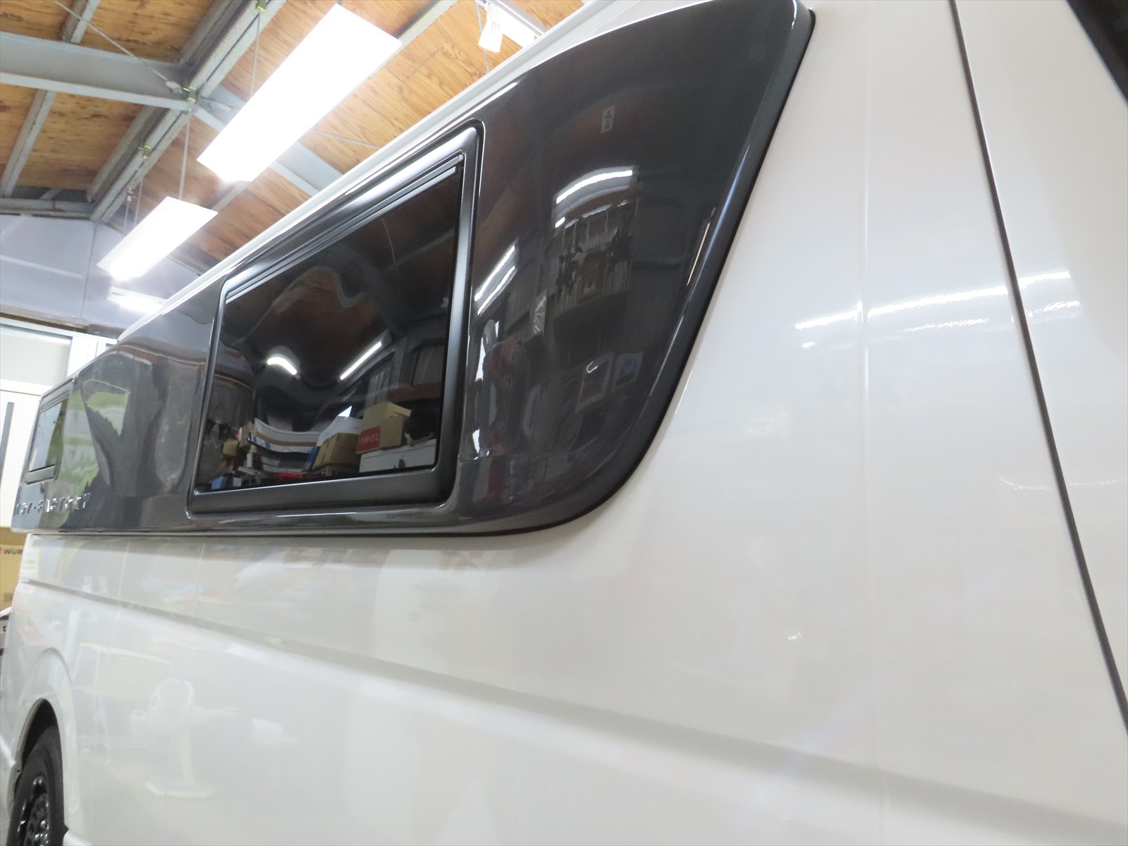 作業は、トヨタ:ハイエース・スーパーロングハイルーフキャンパーのボディ磨き仕上げとレアメタルコーティングの施工をしました!!(後編)