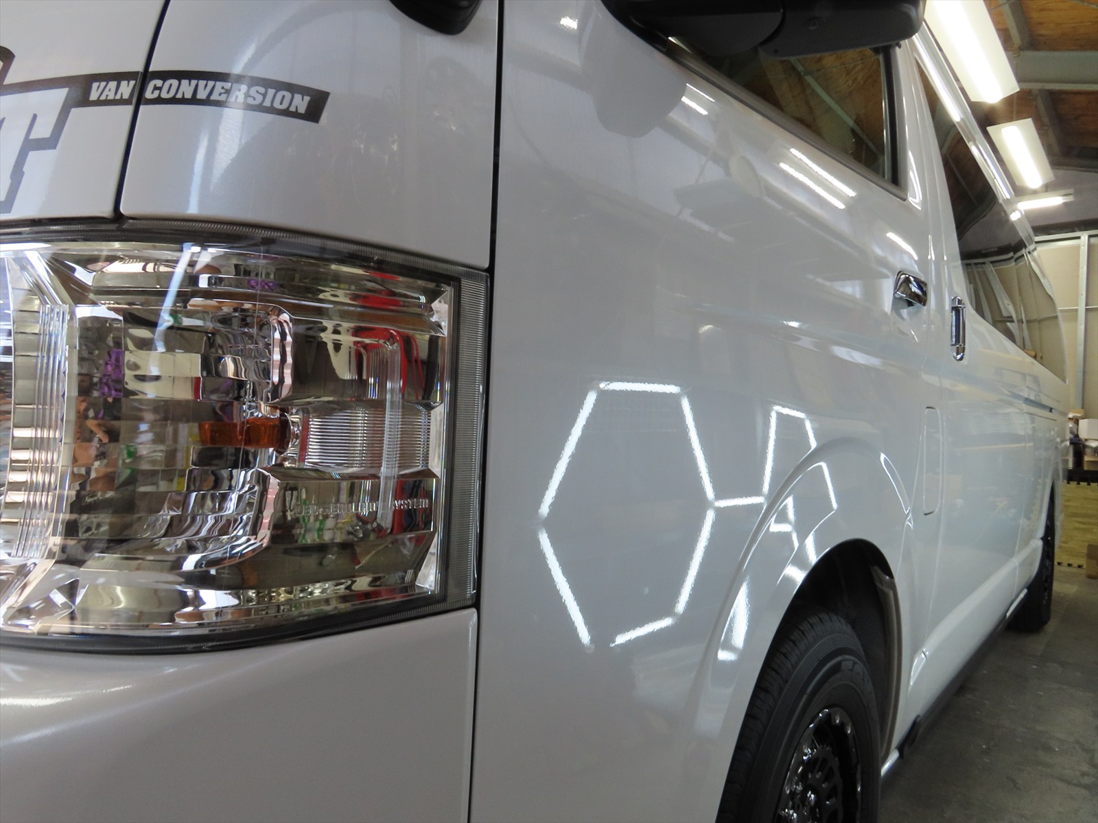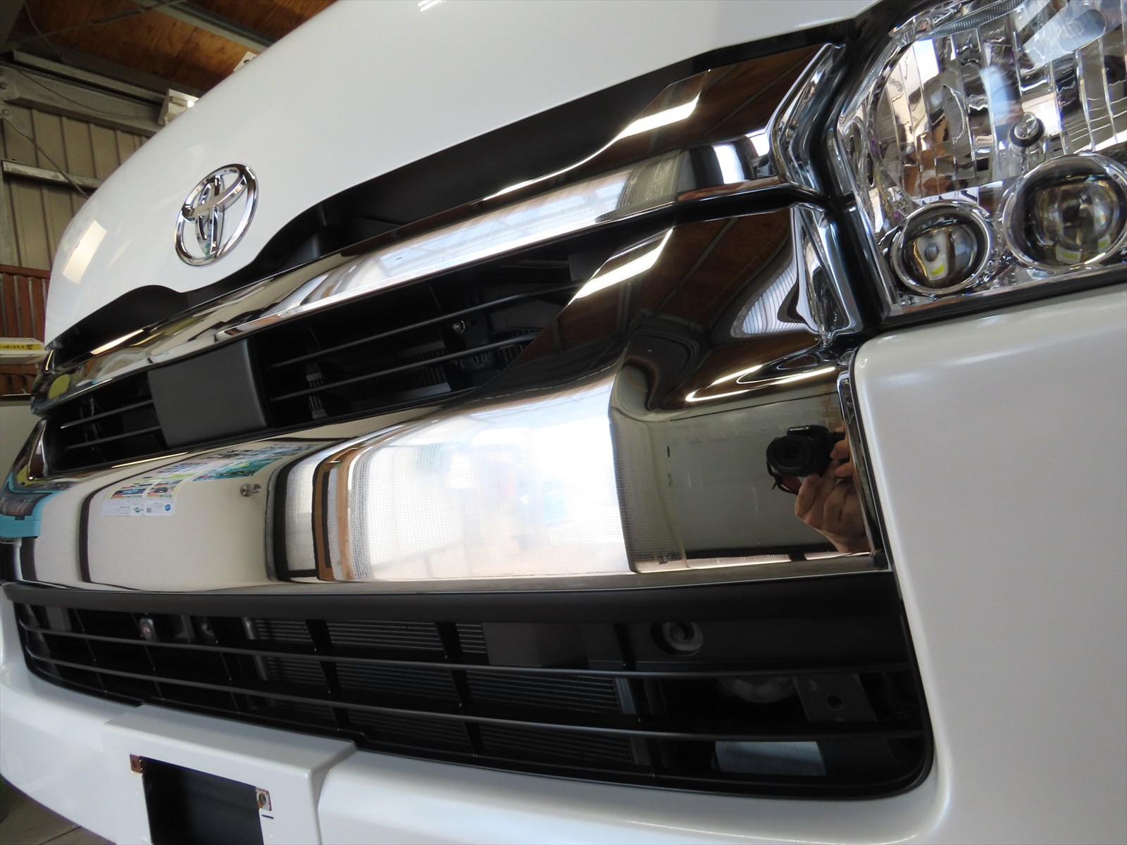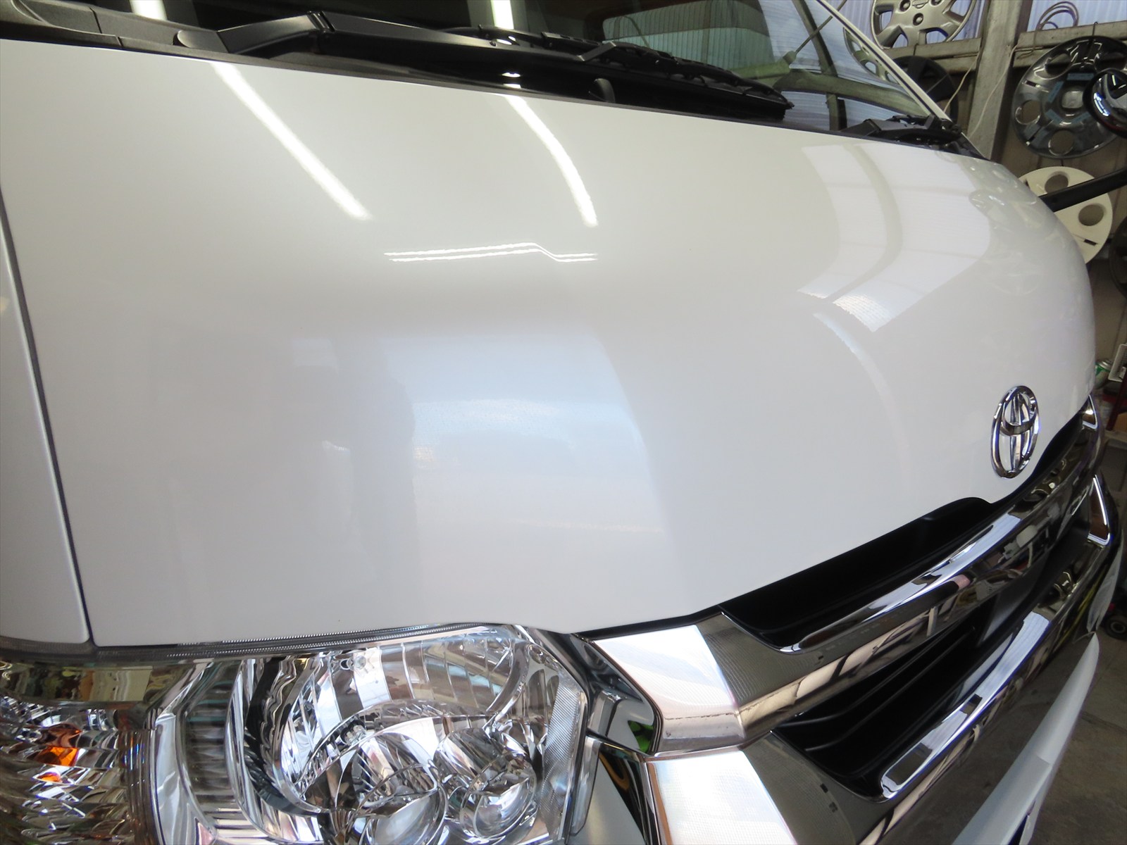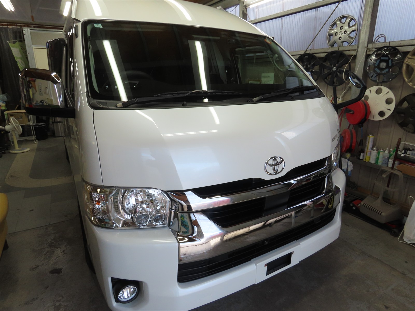 作業は、トヨタ:ハイエース・スーパーロングハイルーフキャンパーのボディ磨き仕上げとレアメタルコーティングの施工をしました!!(後編)