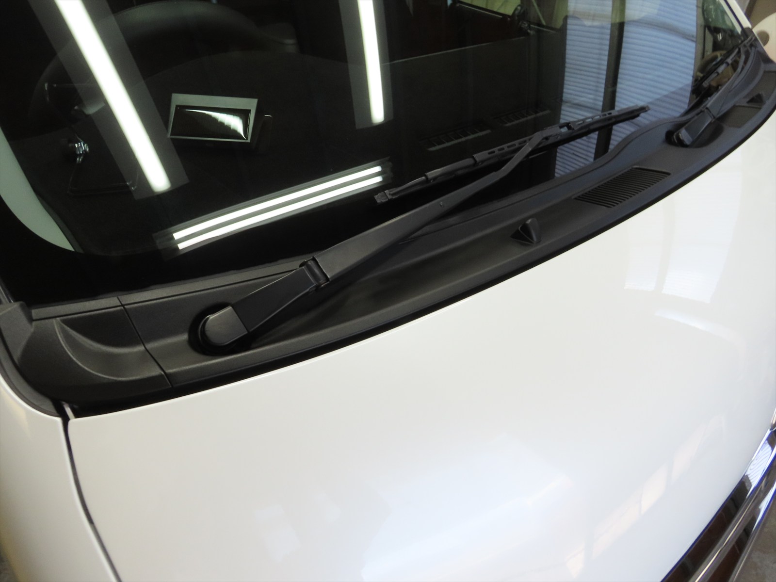 ハイエースでは、フロントボンネットは写真の様に傾斜がきつく・・・ほぼ側面パネルと変わらないくらいですので乗用車の様な上を向いたボンネットの様なタイプとは異なりますので、汚れ対策もまた違った形でのメンテナンスが必要なんですね!?(#^.^#)