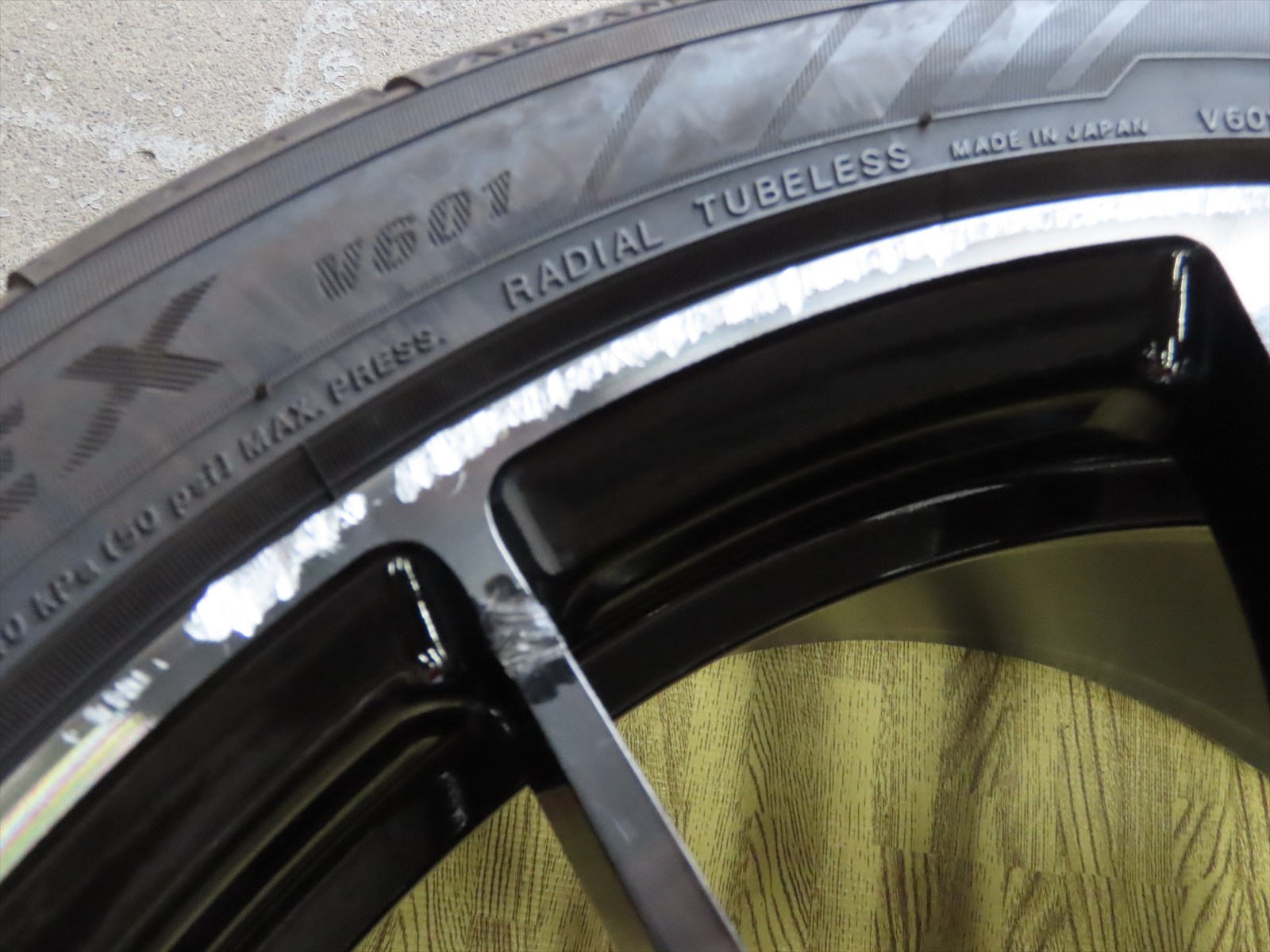 写真では分かり難いのですが、ホイール表面にブラッククリヤ・・・か!?・・・スモーククリヤが塗装されていて通常のダイヤカットリペアとは施工工数も異なってきます!!(;^_^A