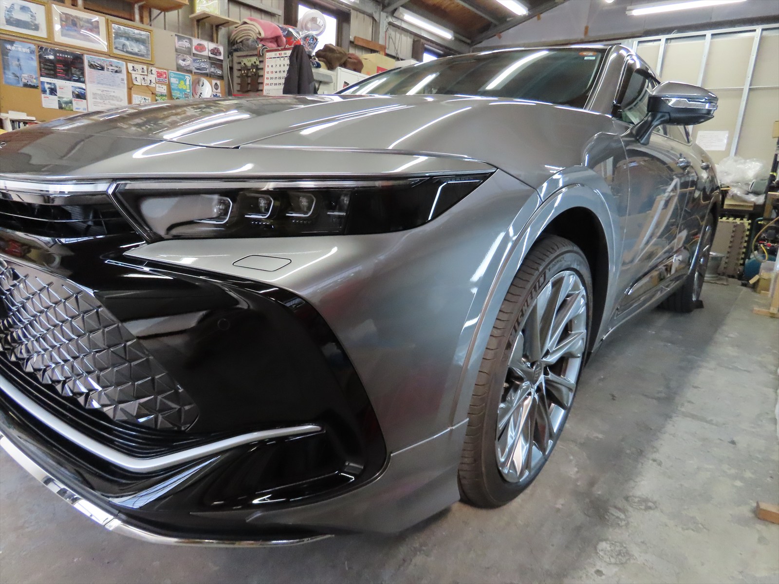 作業は、トヨタ:クラウンクロスオーバーの純正21インチハイパーシルバーメタリック塗装ホイールの擦りキズリペアを施工しました!