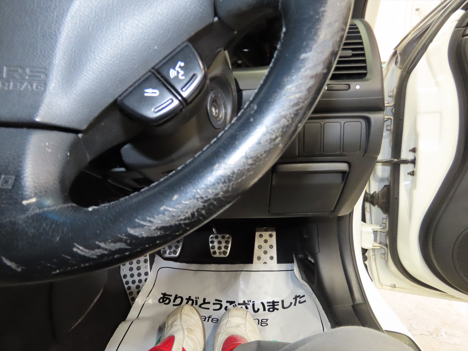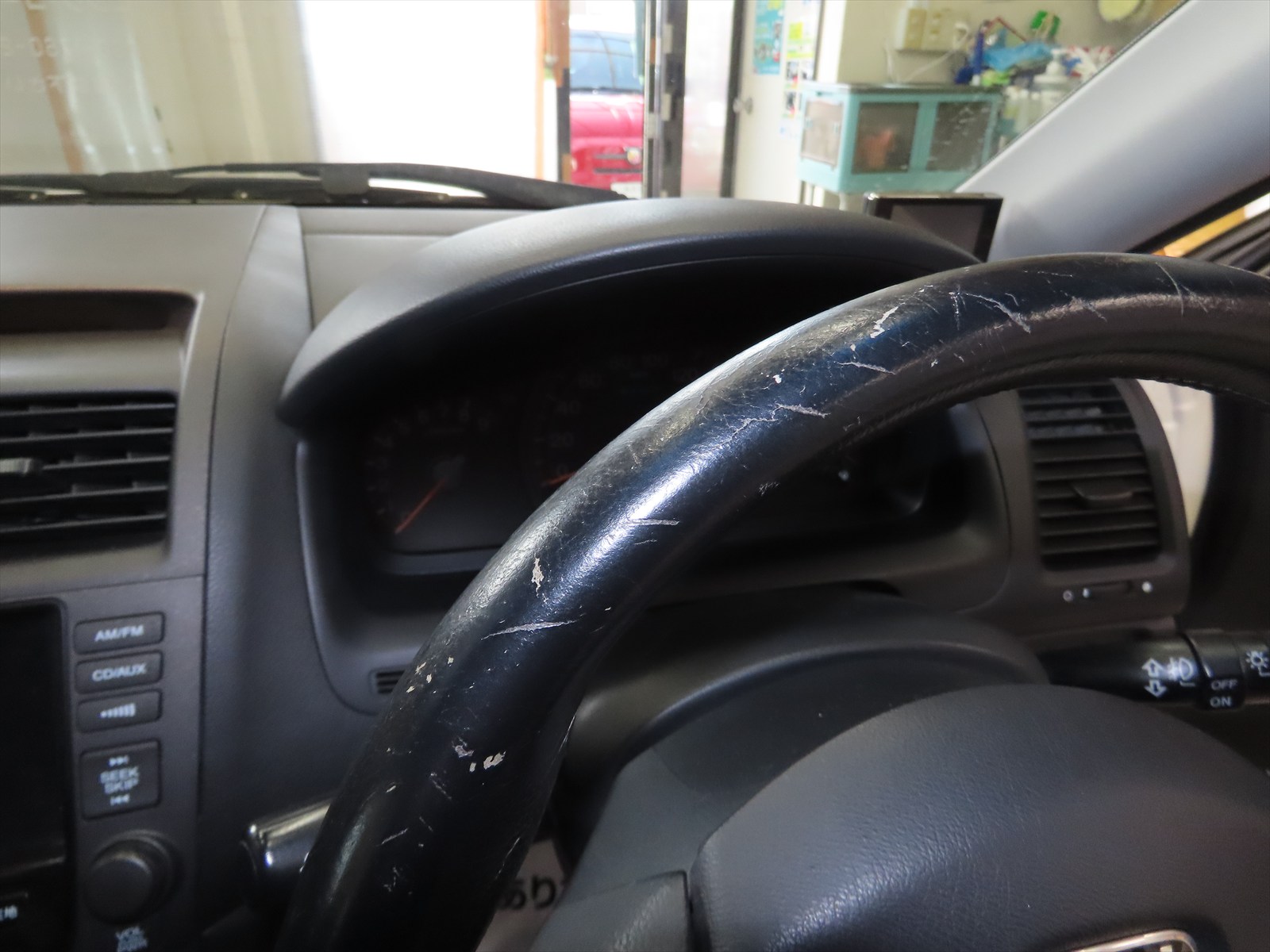 長年~乗られているお車でしたので、ハンドル表皮にも、かなりの使い込まれた形跡が見受けられました!!(;^_^A