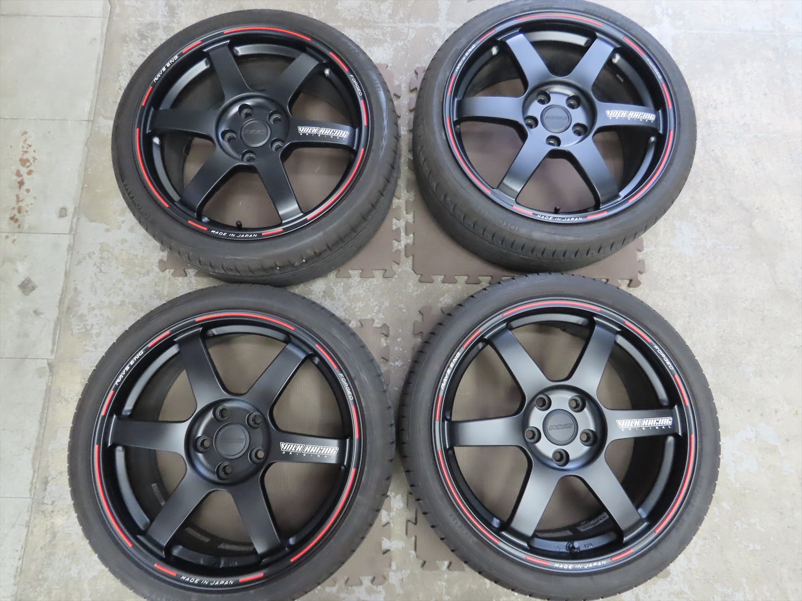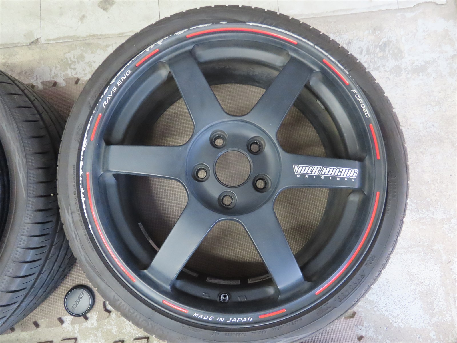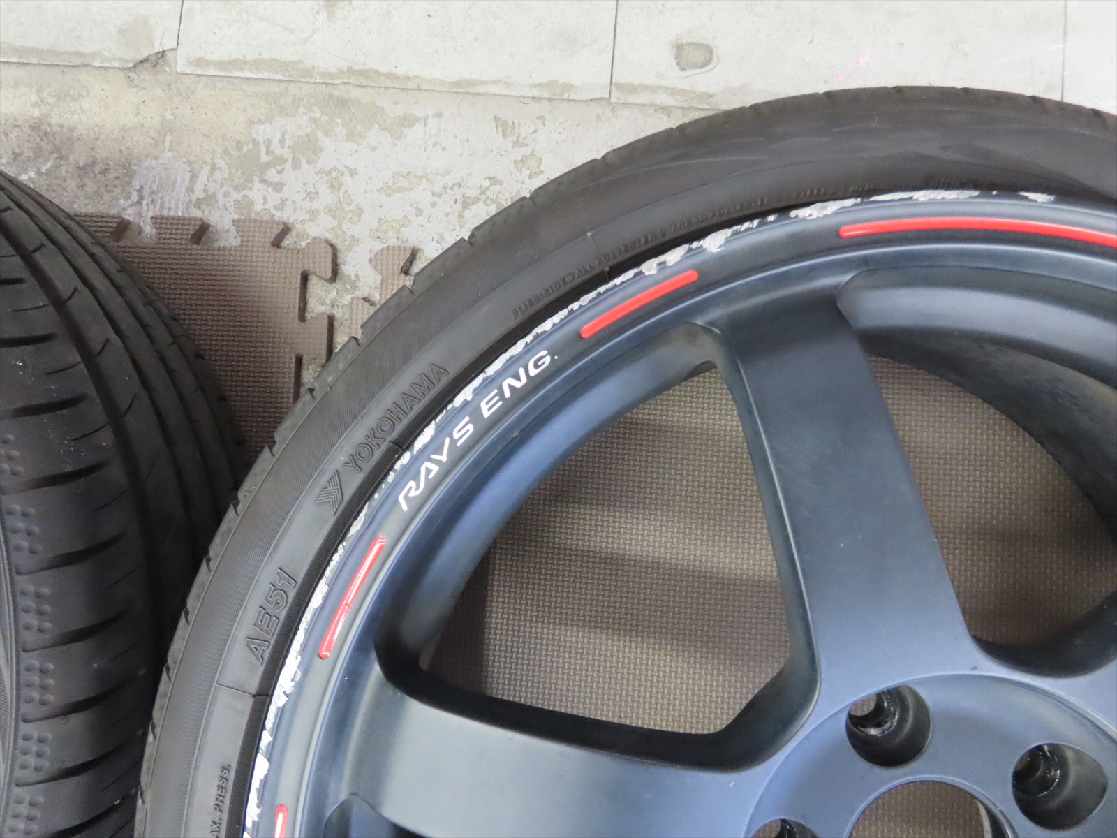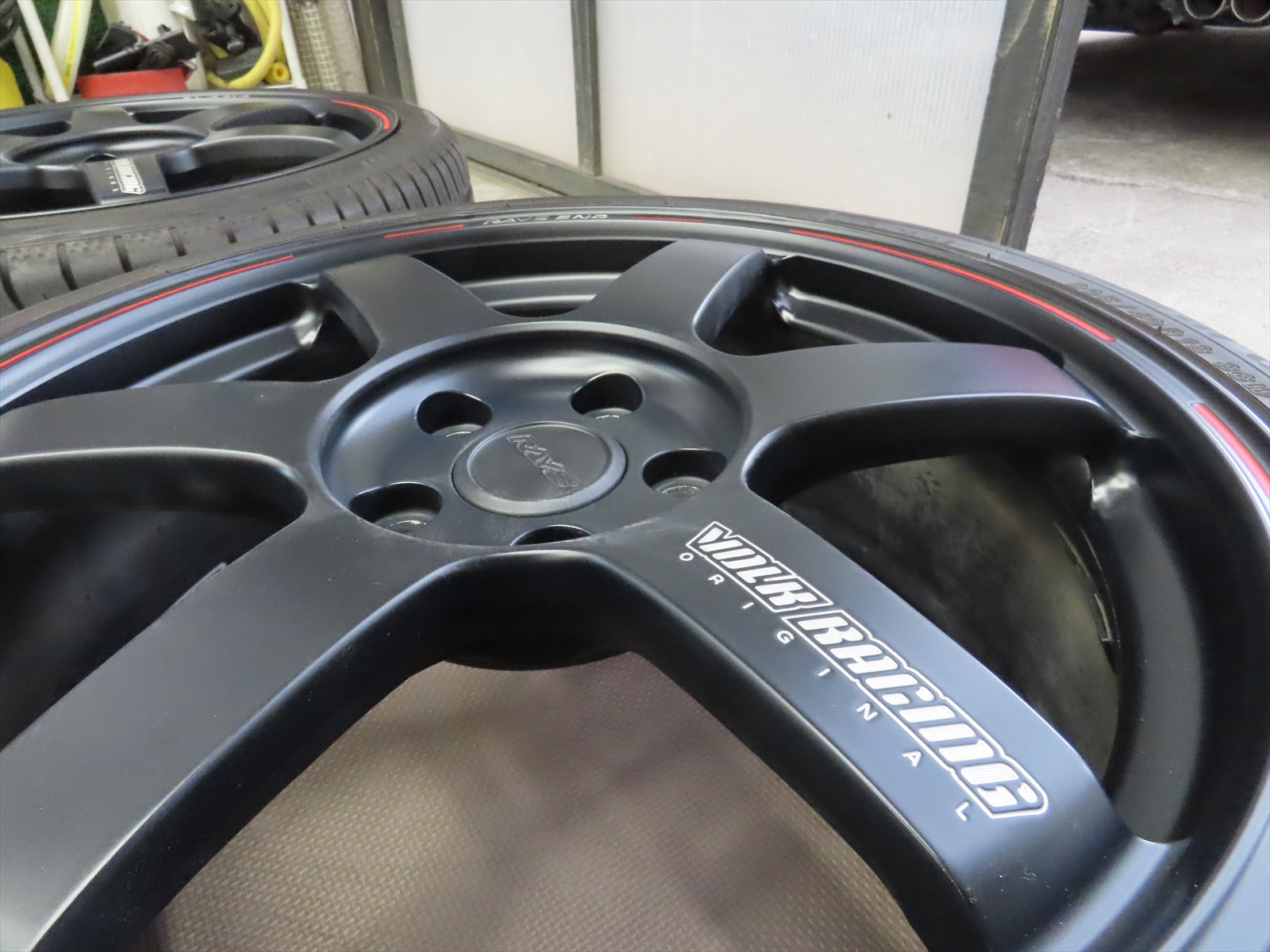 写真でも見てもお分かりかと思いますが、マットブラック塗装仕上げのホイールにマニシング(機械切削加工)による文字・赤色ライン・ブランドロゴの印字がありますよね!・・・この印字の外周側に長い範囲のガリ傷が確認できます。(;^_^A