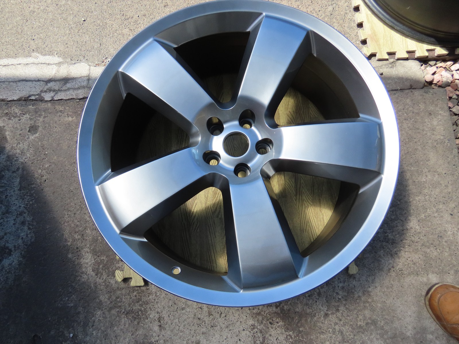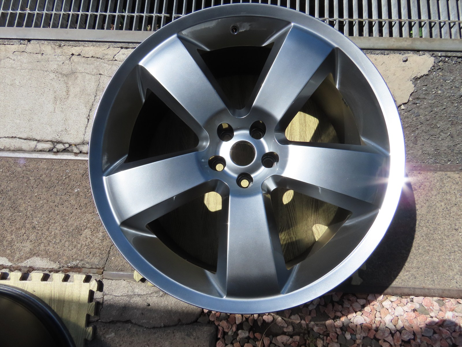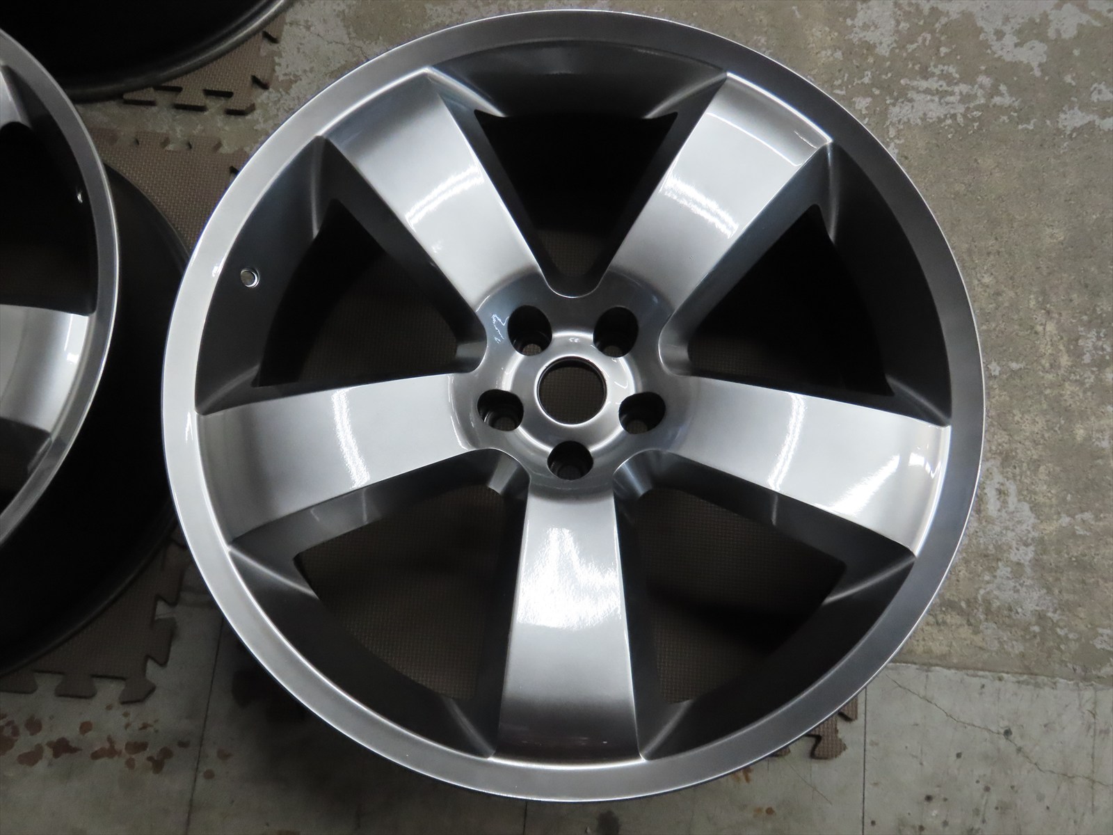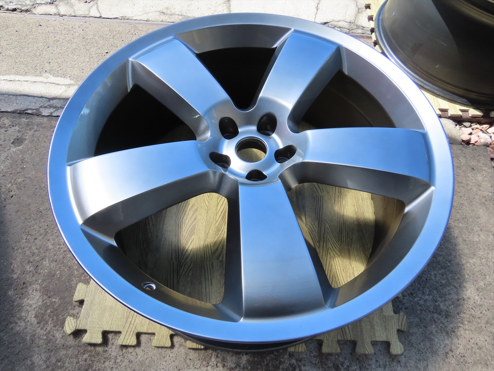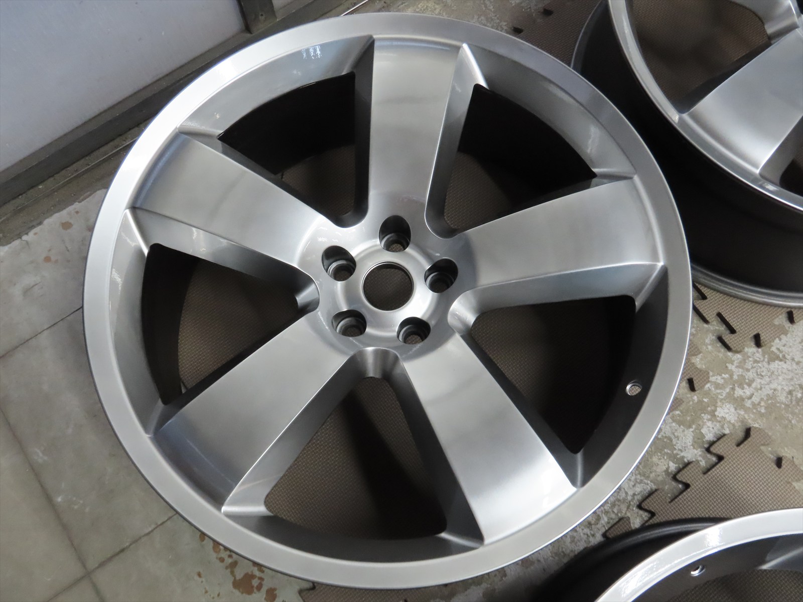 作業は、輸入車用:22インチアルミホイールのキズリペア&カラーチェンジ色替え塗装仕上げの施工をしました!