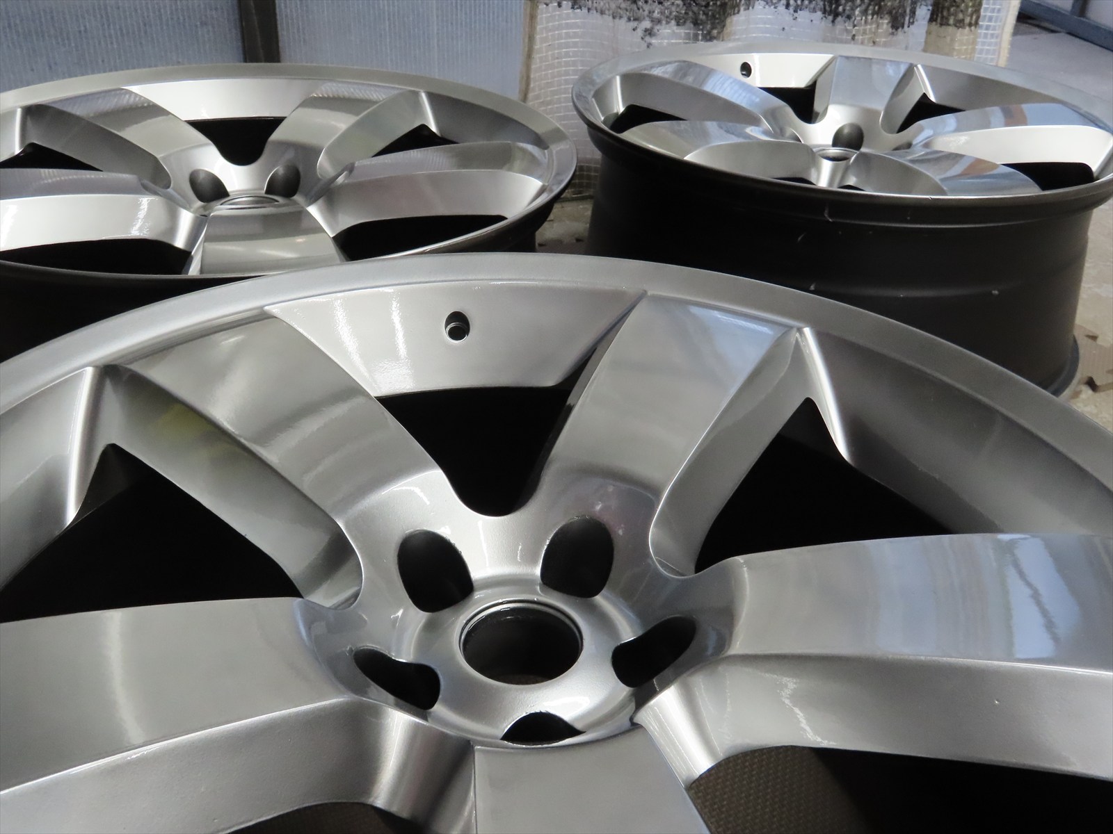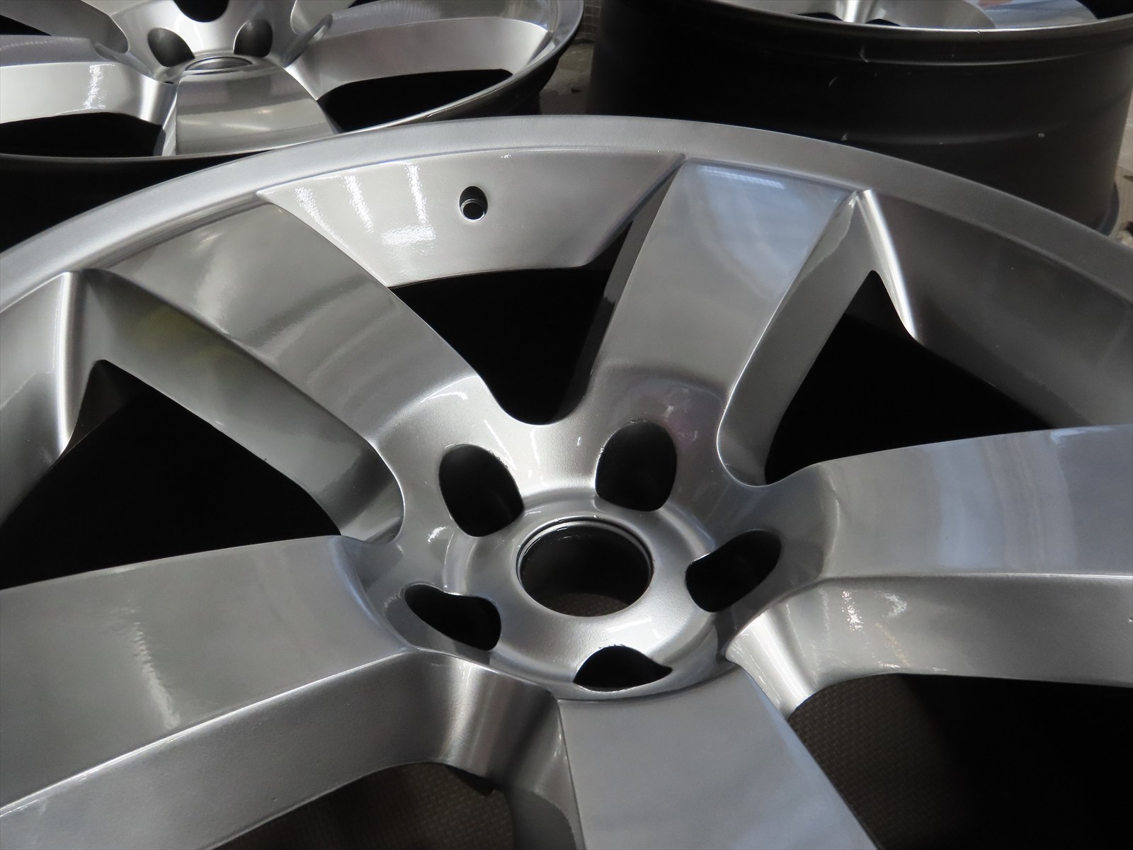 ここまでの大きさのホイールですと、ハイパーシルバーメタリックでの塗装も均等にムラを目立たせなくするには難易度がありますので塗装の状態を良く確認しながら塗り進めることが必要でした!!(#^.^#)