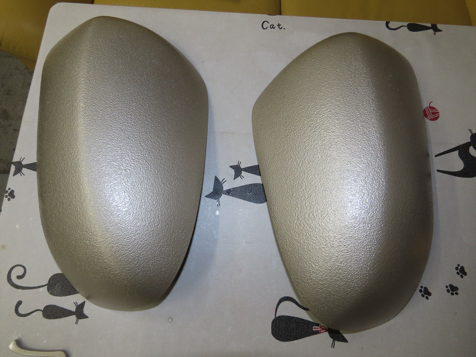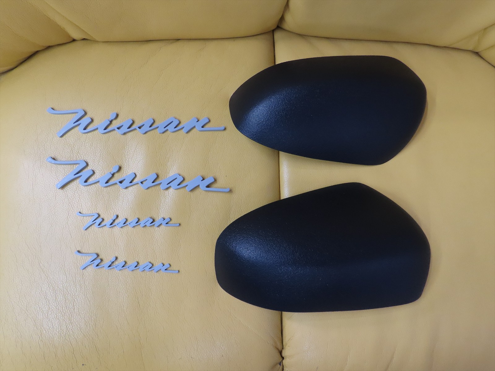 写真にあるのは、両側のドアサイドミラーのカバー部分(写真右)と日産エンブレムの筆記体調のパーツ(写真左)となります。