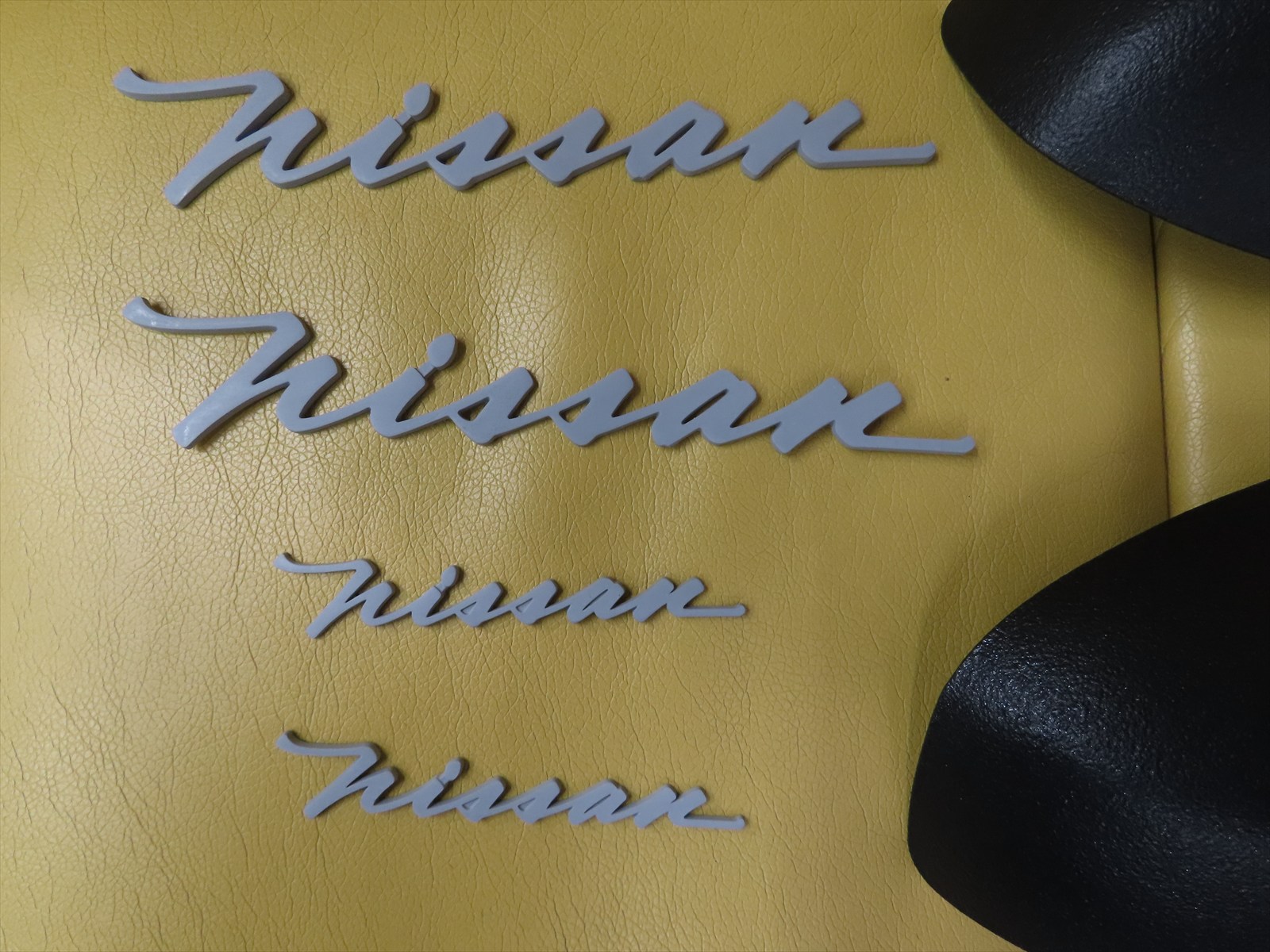 次に・・・日産の筆記体調のエンブレムですが、昔の日産車の一部に使用されていたエンブレムのようですが・・・こちらは非売品で自作による、いわゆるDIYにて樹脂成形してお客様自身により作られたエンブレムとういう事でした!!Σ( ̄□ ̄|||)