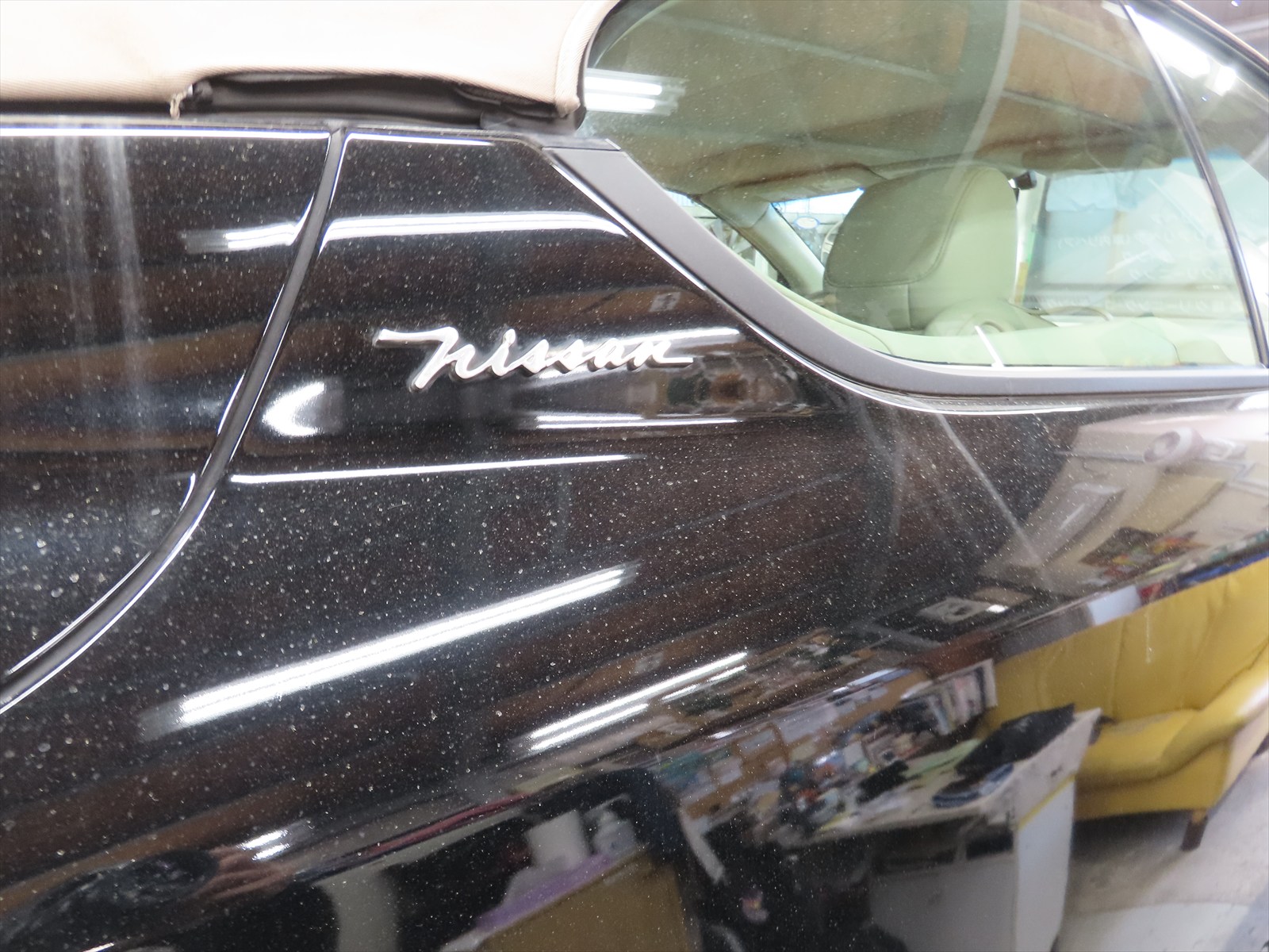 2ドアタイプのカブリオレですので、サイドピラー部分にも日産エンブレムが装着されておりました!!